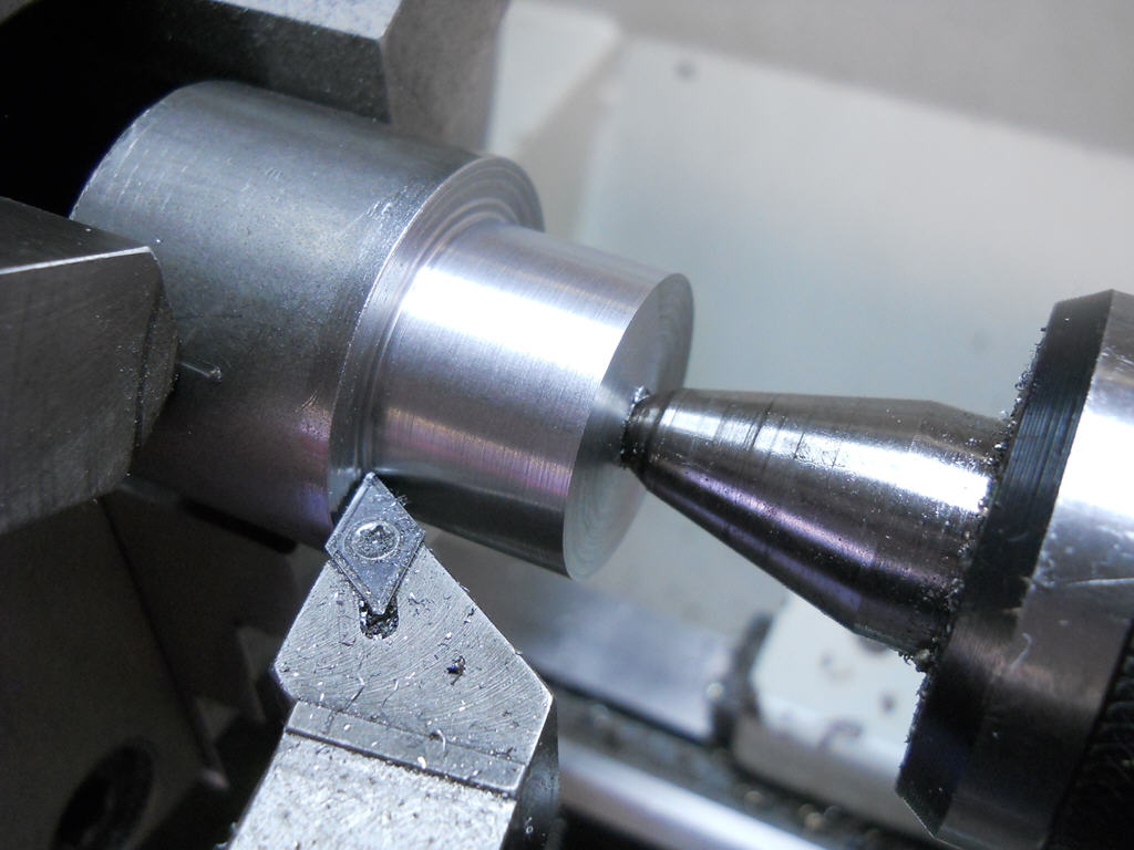 zusammengegossene Reste von der Luftgitterherstellung), also in die Drehbank eingespannt und erst mal ein Loch gebohrt (hatte auch noch nen D25mm Bohrer
