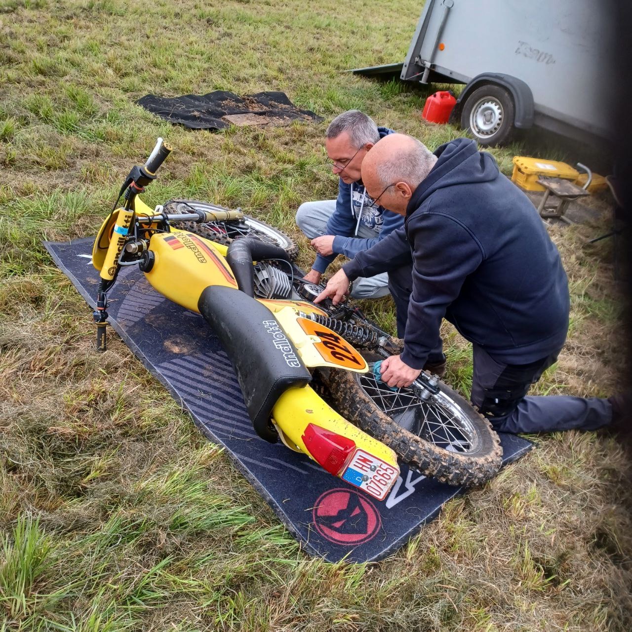 Leider fing Michaels HRD schon beim Einfahren in die Sonderprüfung an zu spucken. Trotz Kerzensteckertausch (hatte einen neuen dabei) wurde das mit der Zeit immer schlimmer.