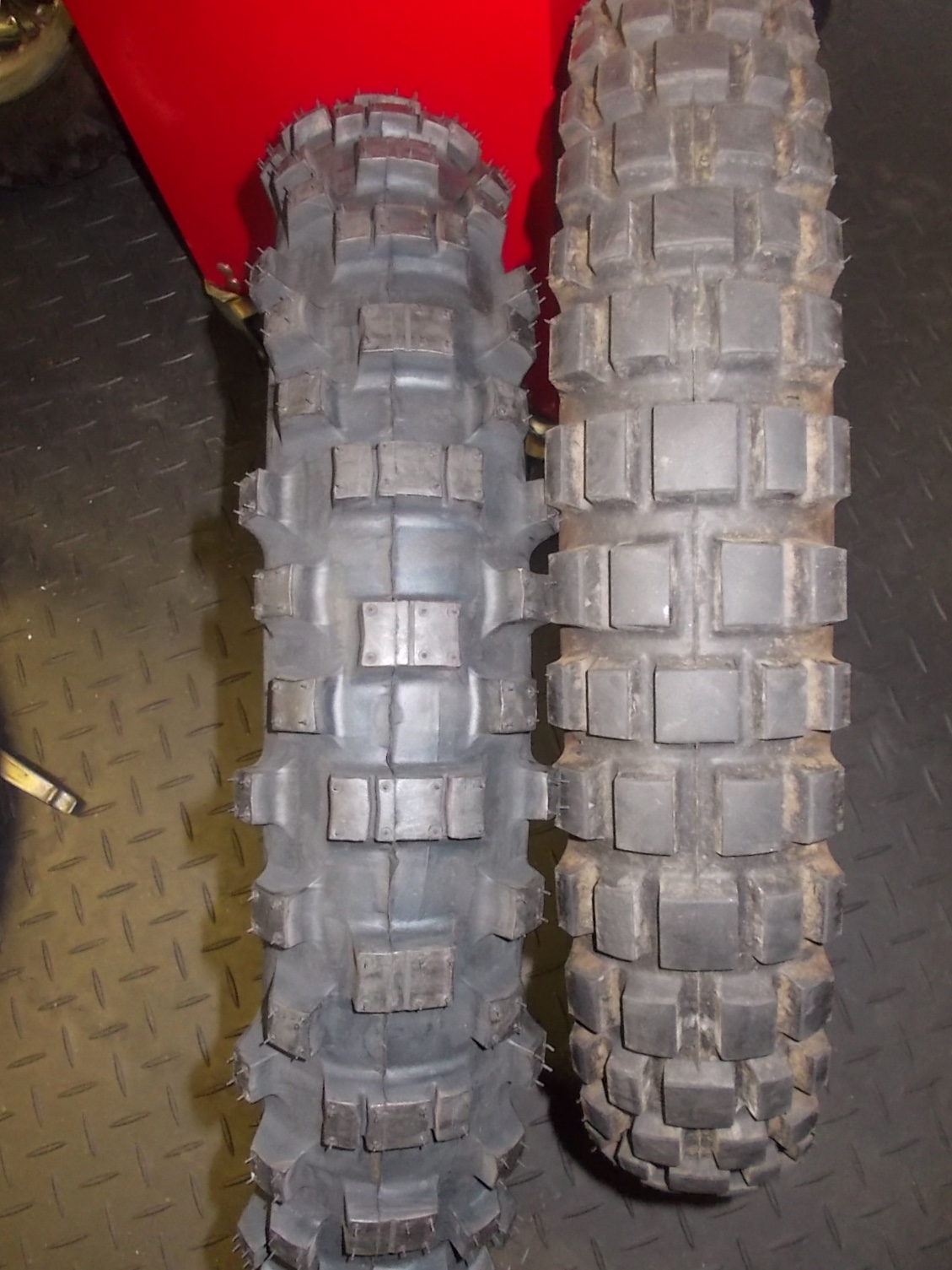 Hab mir Metzler 6 Days geholt in 80/100x21 und 110/80x18. Der vordere ist schön schmal wie ein 2.50x21 und hinten der ist gerade mal 5mm breiter wie ein 3.50x18 Conti TKC 80, passt soweit.