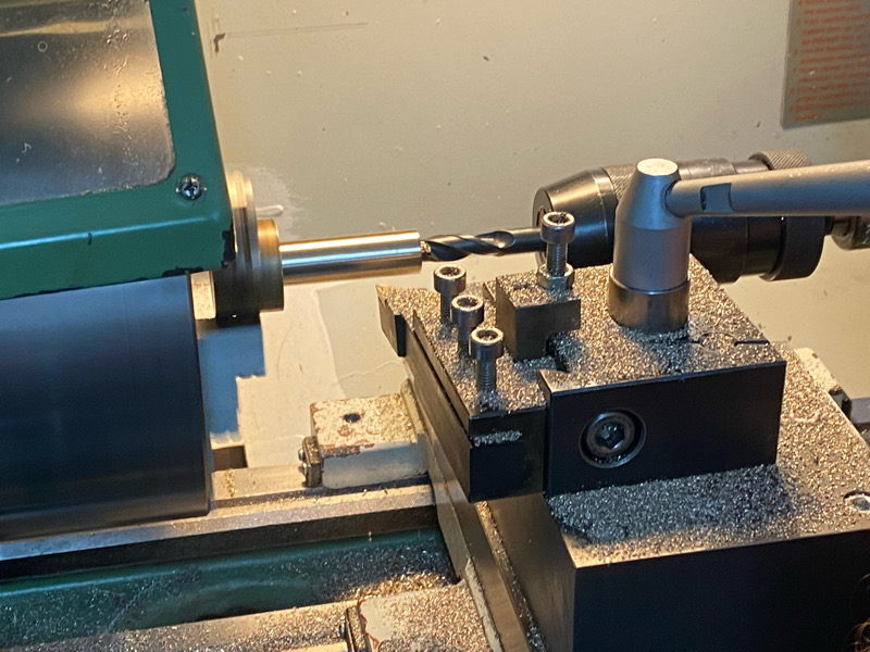 Aber dabei wollte es Kalle nicht belassen. Mangels passender Schafftschrauben sollte der Königsweg beschritten werden. „Da machen wir jetzt auch was passendes“ meinte Kalle und verschwand kurz ins Metalllager, um mir eine Sechskantstange, aus dem Amerikaner im 19. Jahrhundert den Lauf einer Rifle gezogen hätten, in die Hand zu drücken. Meine Versuche, zu erklären, dass ich doch passende Schafftschrauben noch selbst besorgen könne, gingen im Rausch der Drehorgie unter. Störe nie einen Mann, der durchdreht, dachte ich mir, und begab mich daran, wieder Maß zu nehmen und dann durfte ich ablängen: