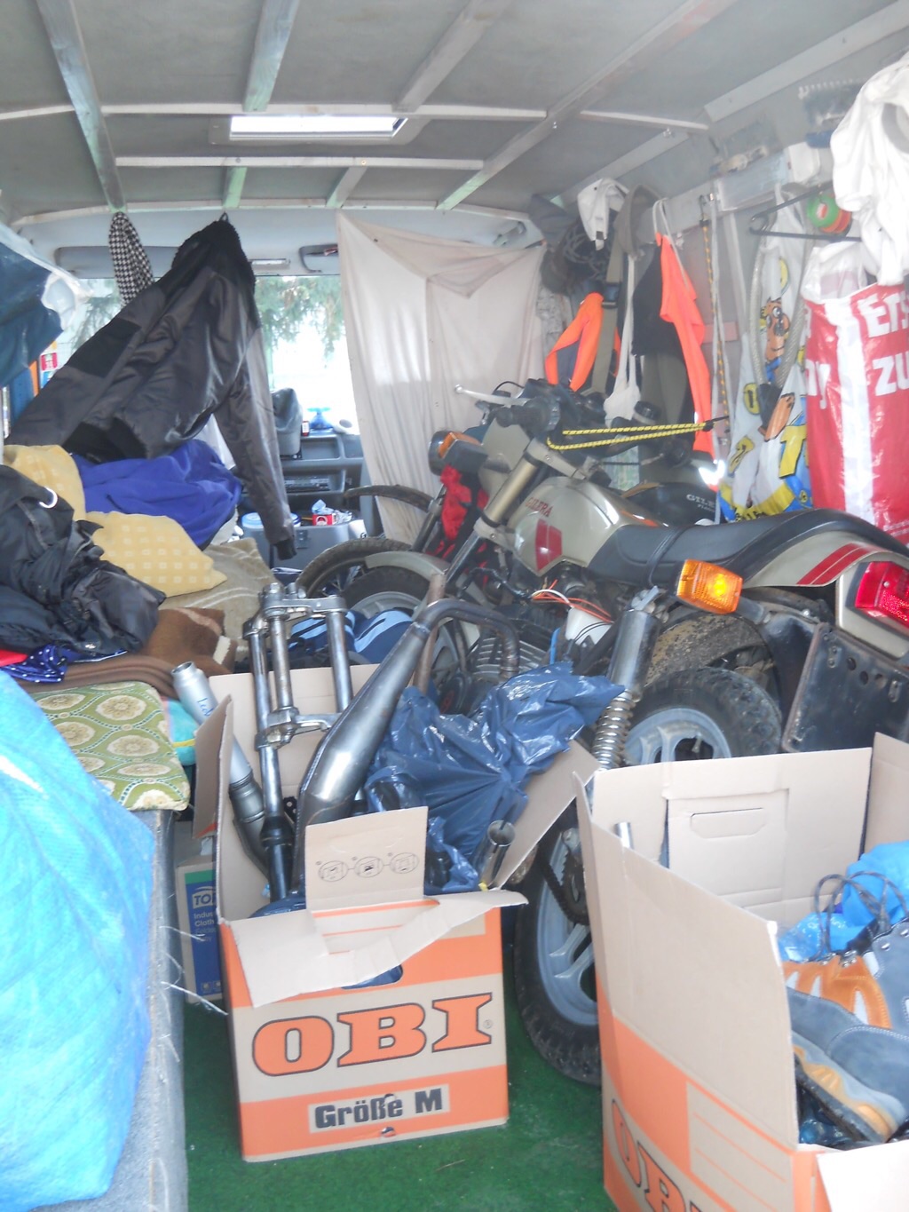 So dieses Jahr bin dann endlich auch mal nach Novegro unterwegs gewesen. Mit genommen hat mich dieser Kerl standesgemäß im Retro Mercedes 208 Bus ( hatte selbst 15 Jahre nen 209) Dateianhang: Sind Donnerstag schon angereist und kamen mitten in der Nacht an. Gleich in den Schlafsack und morgens dann früh rein und erst mal Frühstück. Was ich den Hammer finde sind die Capu, Espresso oder Hörnchenpreise auf dem Markt selbst, jeweils 1,20€. Super lecker, da muss man nichts mitbringen. Auch die Preise für Pommes, Panini etc. sind wirklich moderat, kein Vergleich zur Veterama. Tja dann erst mal nen Rundgang und Impression geholt. Dateianhang: Dateianhang: Dateianhang: Dateianhang: Dateianhang: Dateianhang: Abends mit einigen Bekannten aus dem Forum, erst mal Vorspeisen vertilgen. Dateianhang: Nach einigen Bieren und den Hauptspeisen, ging es zurück zum Bus und da gab es Leckereien im 2cl Bereich Dateianhang: Dateianhang: Samstag und Sonntag war neben Beute machen auch einige Kuriositäten zu bewundern. Dateianhang: Dateianhang: Dateianhang: Sonntag Nachmittag dann Bus voll und es ging leider zurück nach Hause Dateianhang: Dateianhang: Hier mal Bilder meiner Beute Dateianhang: Dateianhang: 3 x VHBZ 20, davon 2 x nagelneu Polini Zylinderkopf, fehlte mir noch Beta Kurzhubzylinder mit Kopf, defekt aber günstig 80ccm Sportkrümmer 3 x Kurze Limadeckel neu Polinikrümmer, muss aber angepasst werden. Endlich T-Gummistücke, siehe auch hier Hupen wie bei Navaho RC 80 Lampenmaske neu Schalter, Kickstartergummi und Öleinfullstopfen Ich kann nur sagen, Novegro ist klasse, kein Vergleich zur Veterama was Enduros angeht. War sicherlich nicht das letzte Mal da. Aber ein Problem hat man dort, das Geld wird schnell weniger, so viel tolle Sachen gibt es da. Gruß Kalle |