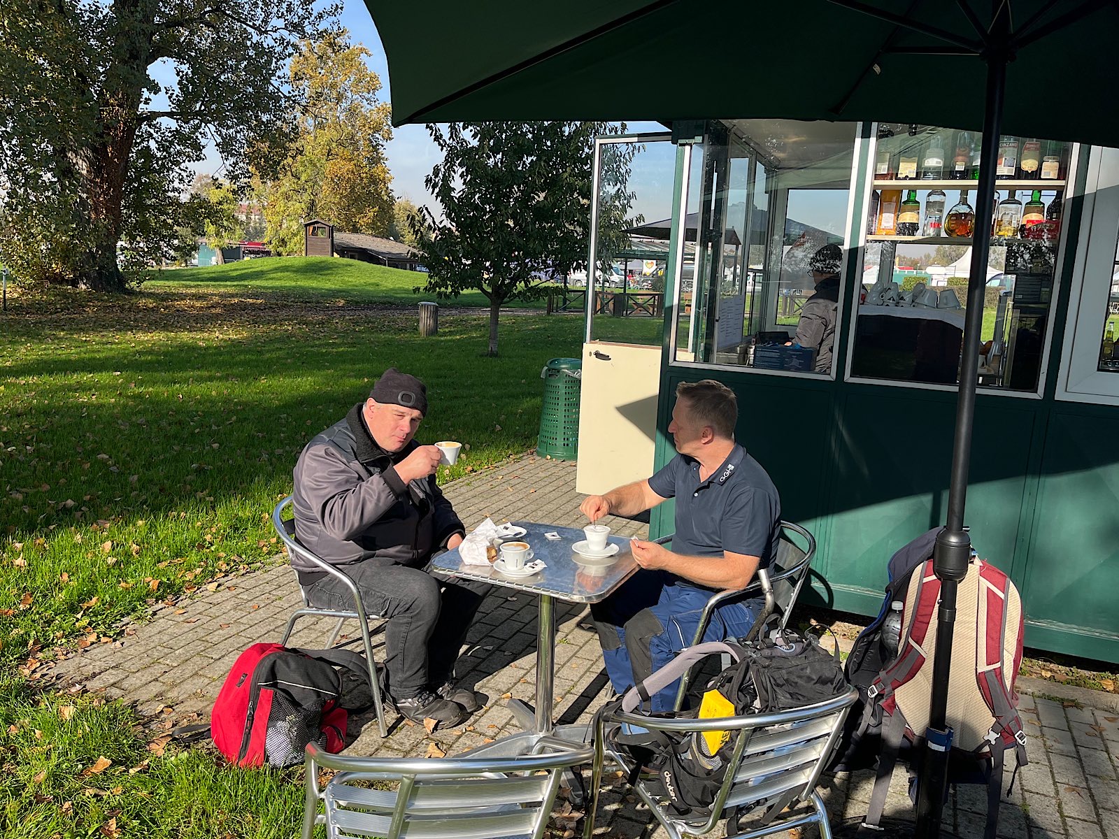 Gleich mal den ersten Cappuccino im Cafe am (Modellbahn) Bahnhof genehmigt.