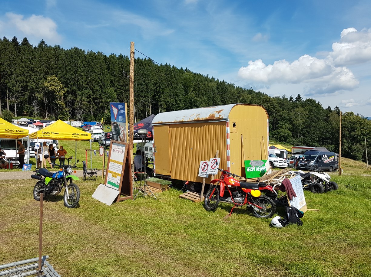 | Meine Kinder scherzen oft, dass ihr Dad wieder 16 ist. Am Samstag war ich jedoch schon wieder 17 Jahre alt. Und wie vor 40 Jahren war das Motocross Rennen in Schweighausen das Ziel. Keine Ahnung warum, aber Programm-Hefte gehören bei mir zu den wenigen Dingen, die die Zeit überleben: Dateianhang: Während ich damals, 1981 den einfacher und flachen Weg über Freiburg gefahren bin, hatte ich mir nun eine Berg & Tal Tour zusammengestellt. Insgesamt ca. 120km ausschließlich über Nebenstraßen mit teils abenteuerlichen Steigungen. Größere Ortschaften und Tankstellen lagen nicht am Weg. Hmm... wieviel säuft eigentlich die Italienerin im Schnitt? Könnte vielleicht knapp werden. Also ein Liter vom Besten noch in den Rucksack gepackt. Bei herrlichem Wetter ging es dann durch herrliche Landschaft. Zum Beweis hier der Berg... Dateianhang: ...und hier das Tal Dateianhang: In Schweighausen konnte ich dann die Kleine unaufällig abstellen und bei der Gelegenheit gleich aus Solidarität zu Hans ein Sperrmüll-Foto schießen: Dateianhang: Vor der Rückfahrt musste ich dann noch den Einlassstutzen wieder etwas festziehen. Der hatte ich gelockert wobei ein Gewinde von Beginn an schon grenzwertig war. Richtig dicht wars ab jetzt auf der Heimfahrt jedenfalls nicht. Dementsprechend war ich auch nicht nur entspannt, obwohl die Strecke alles hergab. Dateianhang: Aufgrund einer Baustelle musste ich dann noch einen 10km Umweg mitnehmen und war mir auch bezüglich der Sprit-Kalkulation nicht mehr so sicher. Erst 15km vor der sicheren Homebase entspannten sich die Gesichtszüge. Ab hier würde es zur Not auch ohne Motor gehen. Ab hier gings nämlich bergab. vg Jürgen | |