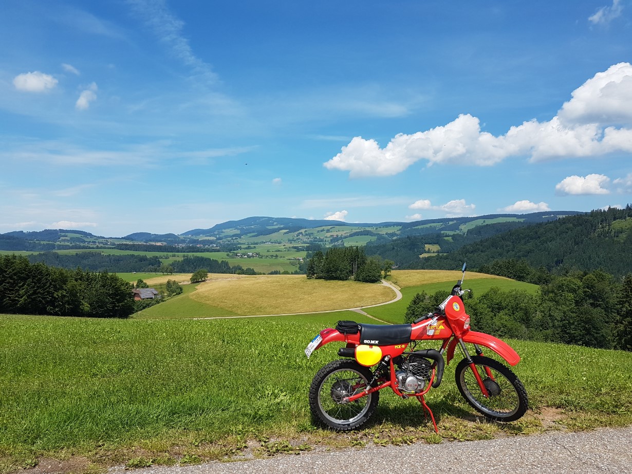 Meine Kinder scherzen oft, dass ihr Dad wieder 16 ist. Am Samstag war ich jedoch schon wieder 17 Jahre alt. Und wie vor 40 Jahren war das Motocross Rennen in Schweighausen das Ziel. Keine Ahnung warum, aber Programm-Hefte gehören bei mir zu den wenigen Dingen, die die Zeit überleben: Dateianhang: Während ich damals, 1981 den einfacher und flachen Weg über Freiburg gefahren bin, hatte ich mir nun eine Berg & Tal Tour zusammengestellt. Insgesamt ca. 120km ausschließlich über Nebenstraßen mit teils abenteuerlichen Steigungen. Größere Ortschaften und Tankstellen lagen nicht am Weg. Hmm... wieviel säuft eigentlich die Italienerin im Schnitt? Könnte vielleicht knapp werden. Also ein Liter vom Besten noch in den Rucksack gepackt. Bei herrlichem Wetter ging es dann durch herrliche Landschaft. Zum Beweis hier der Berg... Dateianhang: ...und hier das Tal Dateianhang: In Schweighausen konnte ich dann die Kleine unaufällig abstellen und bei der Gelegenheit gleich aus Solidarität zu Hans ein Sperrmüll-Foto schießen: Dateianhang: Vor der Rückfahrt musste ich dann noch den Einlassstutzen wieder etwas festziehen. Der hatte ich gelockert wobei ein Gewinde von Beginn an schon grenzwertig war. Richtig dicht wars ab jetzt auf der Heimfahrt jedenfalls nicht. Dementsprechend war ich auch nicht nur entspannt, obwohl die Strecke alles hergab. Dateianhang: Aufgrund einer Baustelle musste ich dann noch einen 10km Umweg mitnehmen und war mir auch bezüglich der Sprit-Kalkulation nicht mehr so sicher. Erst 15km vor der sicheren Homebase entspannten sich die Gesichtszüge. Ab hier würde es zur Not auch ohne Motor gehen. Ab hier gings nämlich bergab. vg Jürgen |