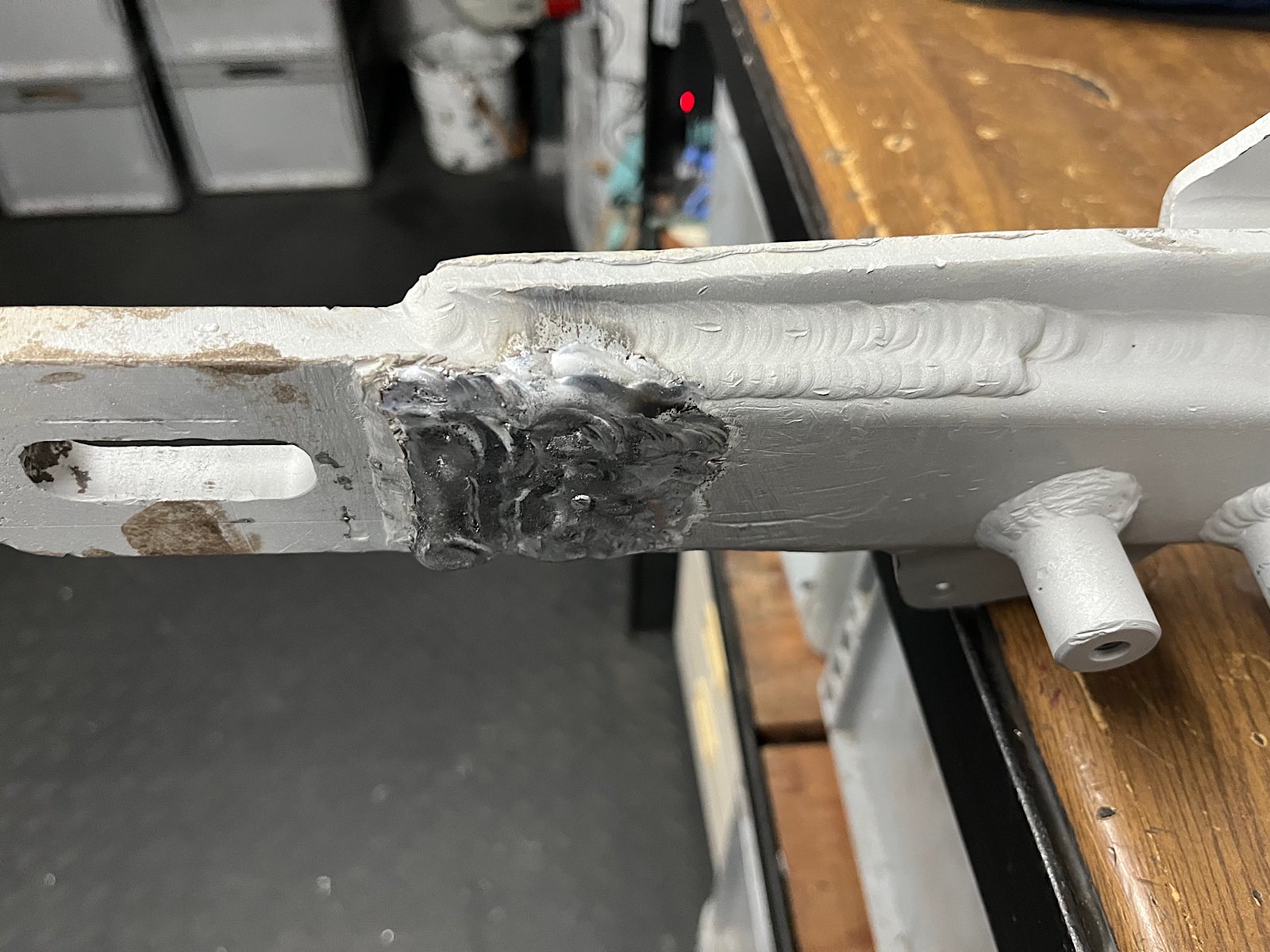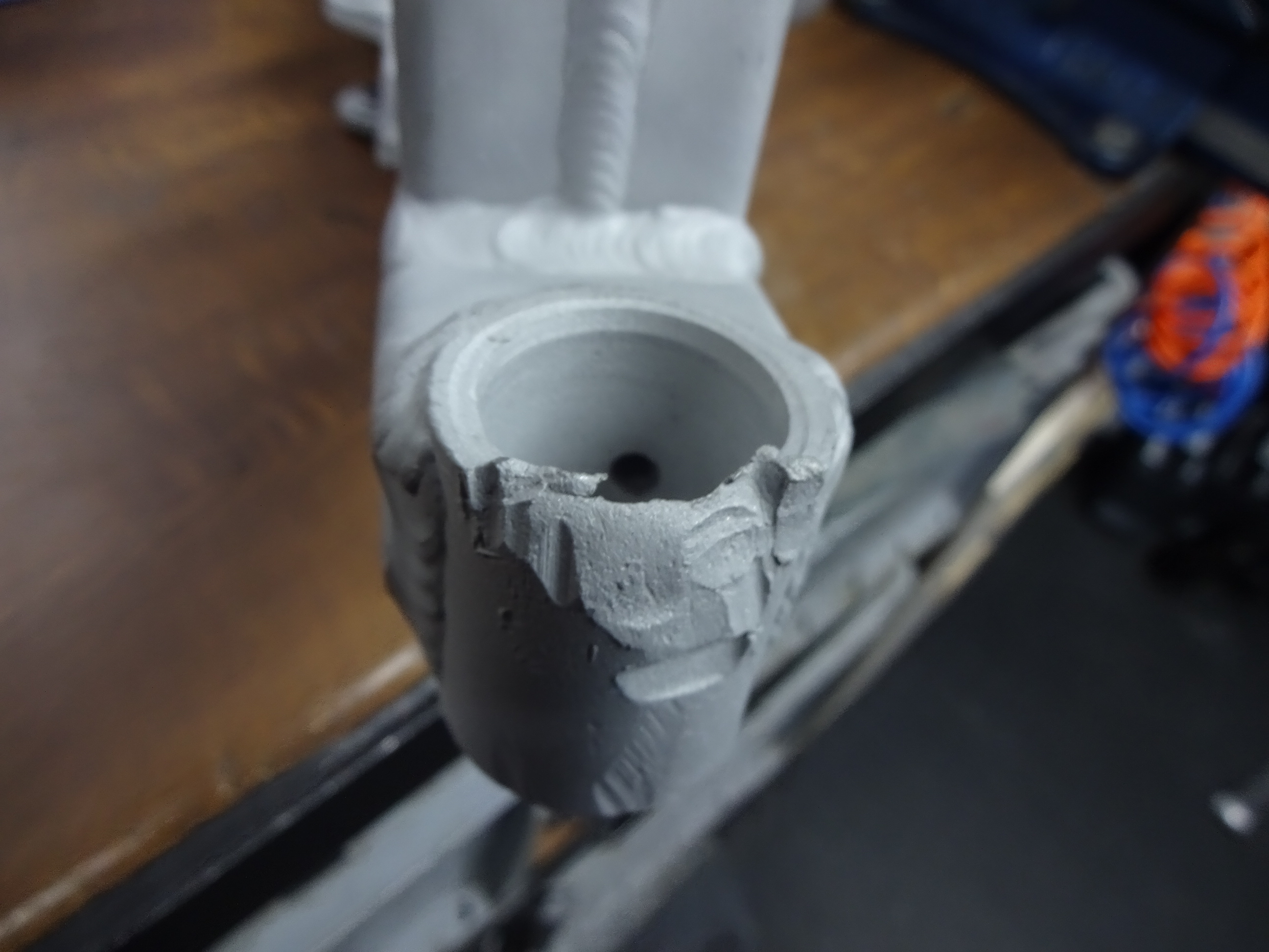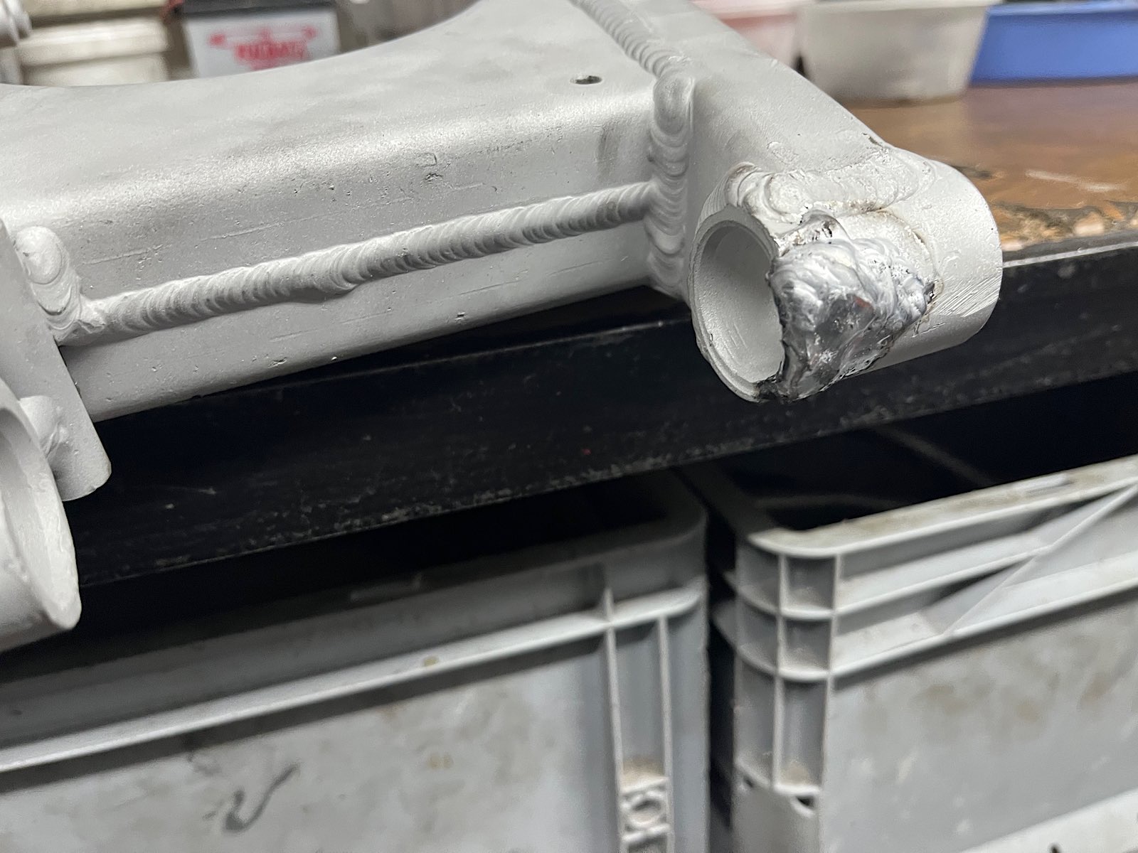 Die Kettenradaufnahme sah nicht mehr wirklich schön aus. Da die Lager noch drin sind, ab auf die Drehbank