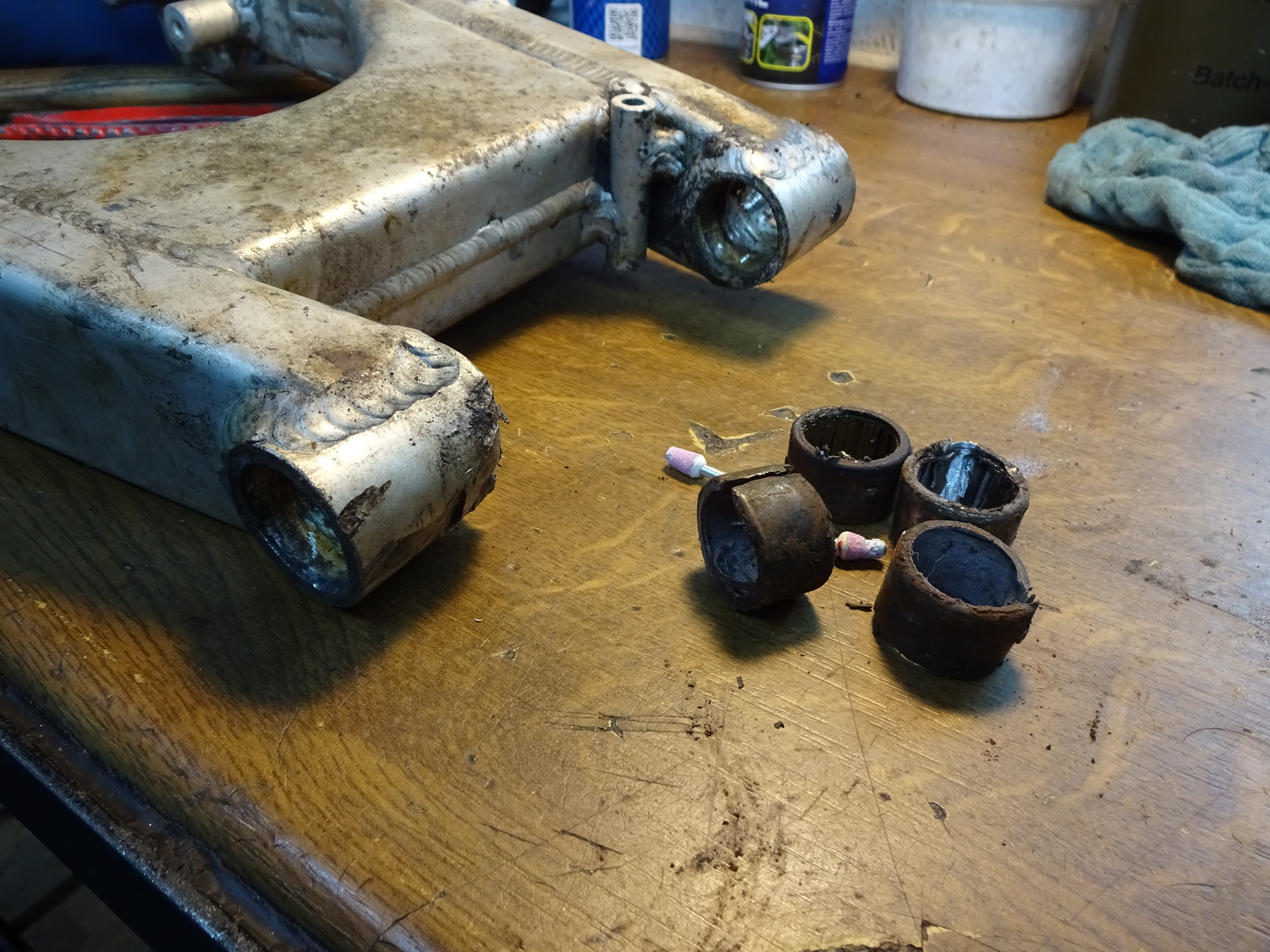 Die Kettenradaufnahme sah nicht mehr wirklich schön aus. Da die Lager noch drin sind, ab auf die Drehbank