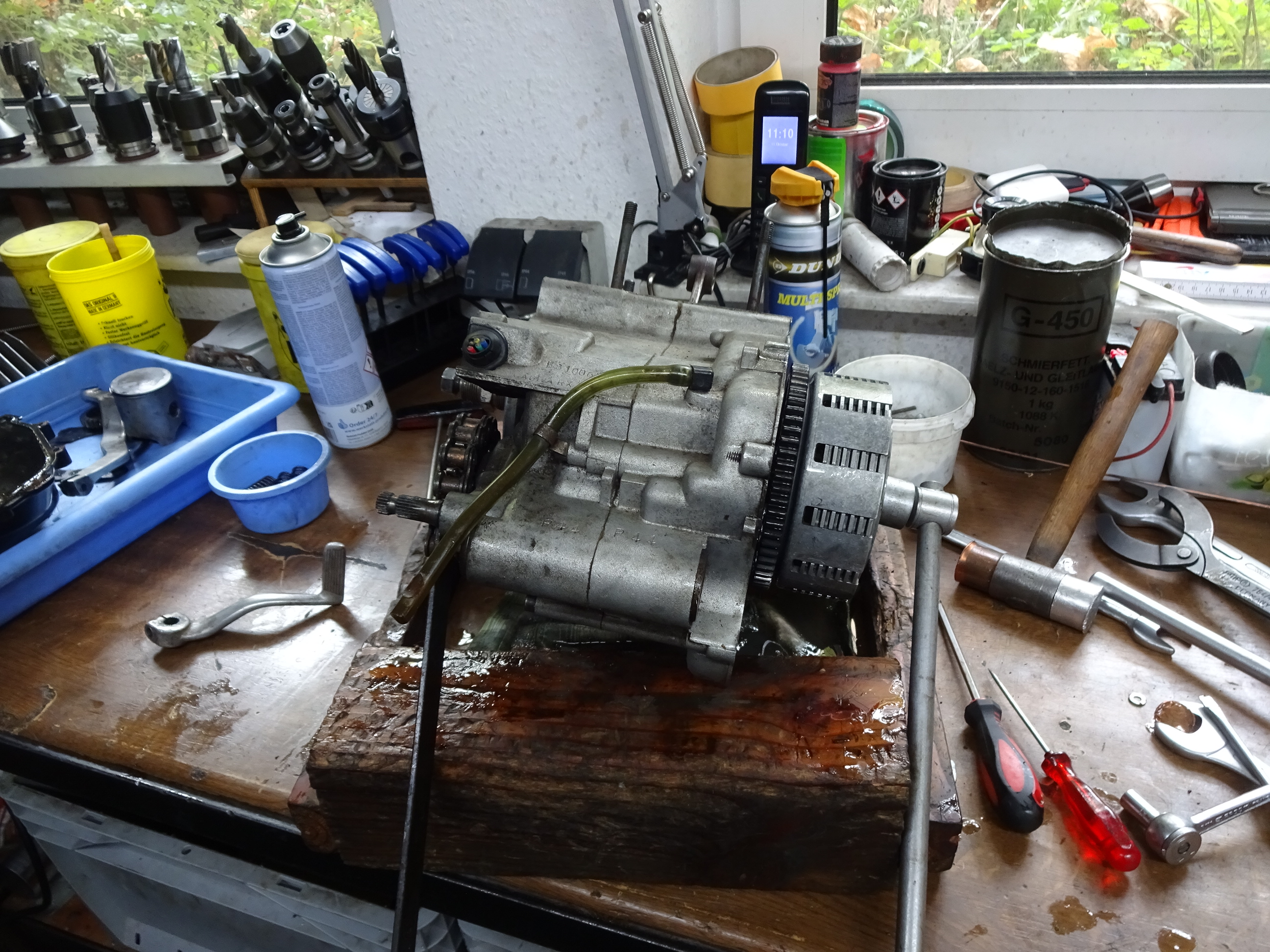 Kupplungsseite alles prima, auch wenn ich über das Getriebe die Kupplungskorbschraube gegenhalten musste. Ging nicht anders zu blockieren, aber im Endeffekt einfach.