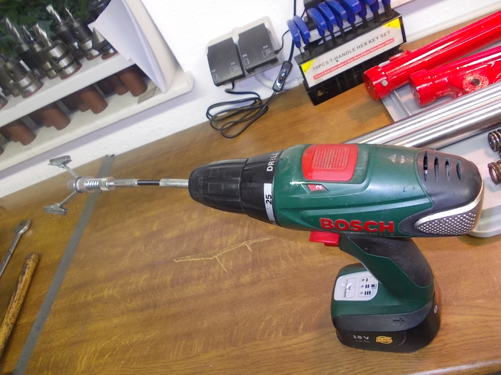 Dann überlegt und das kleine Hongerät auf den Akkuschrauber gesteckt und reingehalten mit schön Schmiermittel.