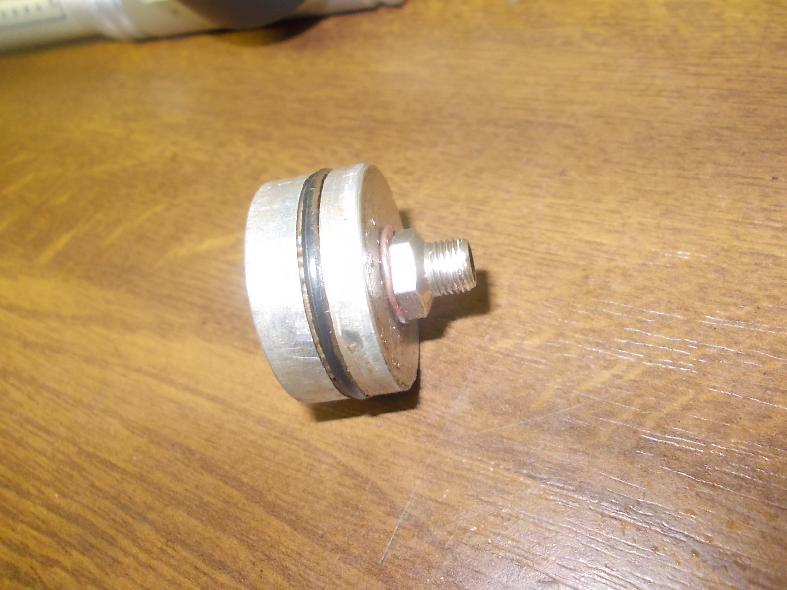 Jetzt bekomme ich den Trennkolben nicht aus dem Ausgleichbehälter, der Zangentrick funktioniert hier nicht. Hab mir zwar nen neuen Deckel mit Dichtung erstellt und dort ein Autoventil eingebaut (Bilder kommen noch). Aber ich muss mir ne Hochdruckpumpe (MtB Gabelpumpe) besorgen, mit 8 bar kommt der Trennkolben noch nicht hoch.