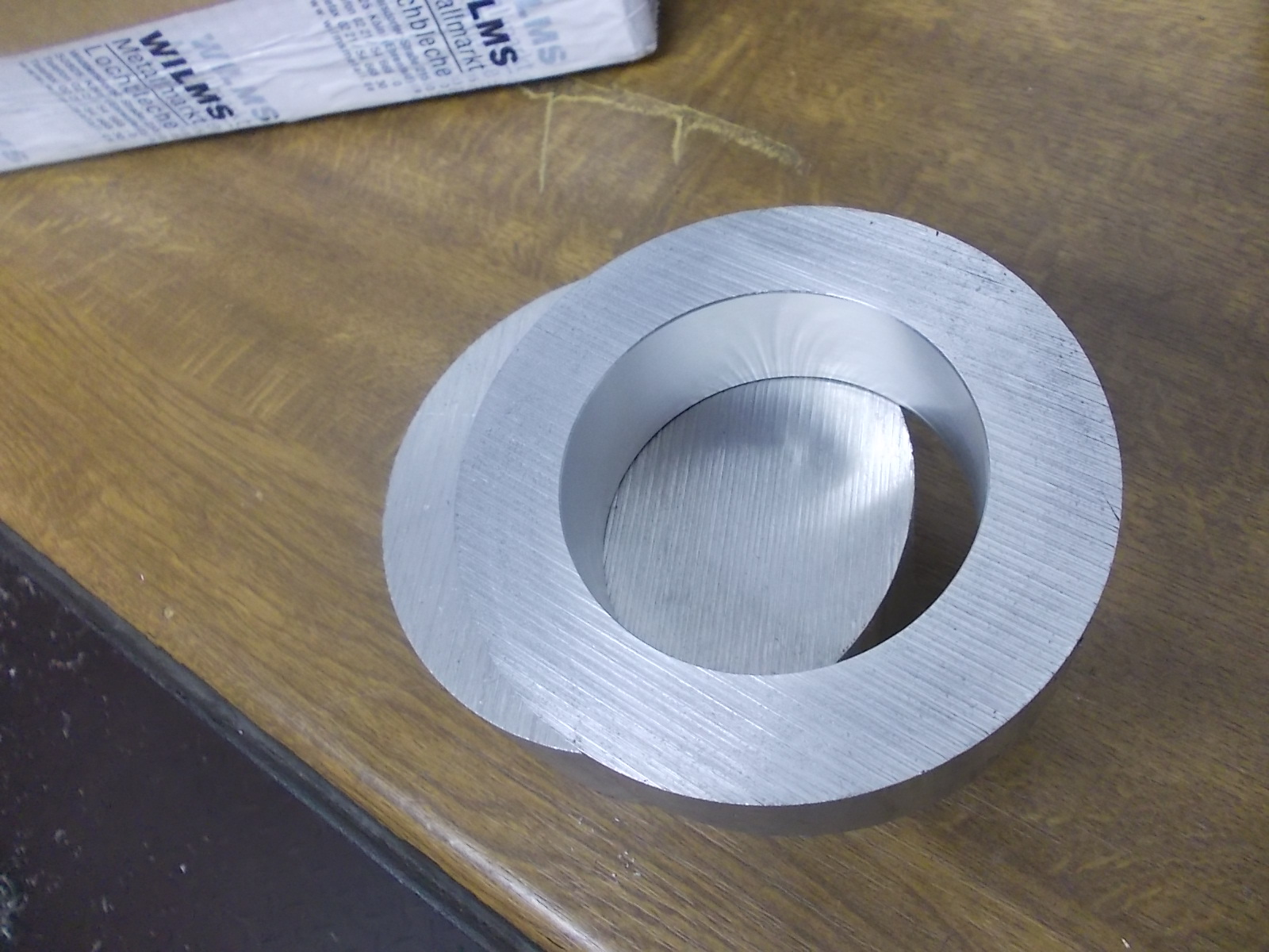 Jetzt musste ich das Teil erst mal halbwegs an der Schweissnaht verputzen und dann auf der Drehbank auf das richtige Endmaß bringen.