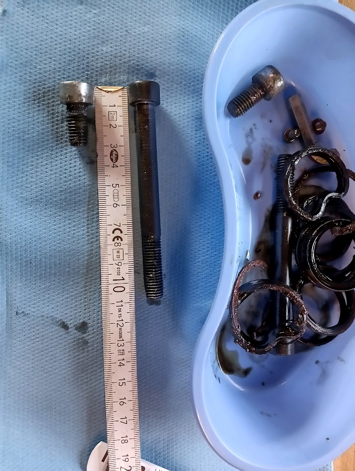 da ich mit dem Federverhalten meiner Gabel nicht besonders zufrieden bin (hat ganz beschissen ausgefedert und meistens die letzten 5cm gehangen) habe ich die Gabel wieder zerlegt da ich dachte das evtl. etwas krumm ist. Also die Gabelbrücke ist gerade und die beiden verchromten Standrohre auch. Von daher supi. Das Innenleben habe ich mal komplett in mein Ultraschallbad gelegt und ausgeblasen. Jetzt habe ich so schlau wie ich bin ja alles fotografiert. Nur nicht wie rum das Ventilteil im Standrohr sitzt. Ich meine