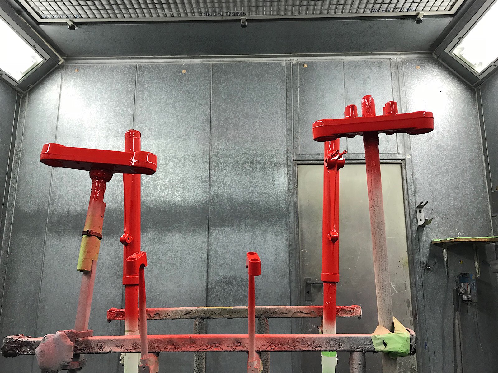 Der Kollege hat auch schon was für mich getan, der Rahmen ist schön gestrahlt worden (passt nicht in meine Strahlkabine) und geht mit den anderen Teilen zum Pulvern