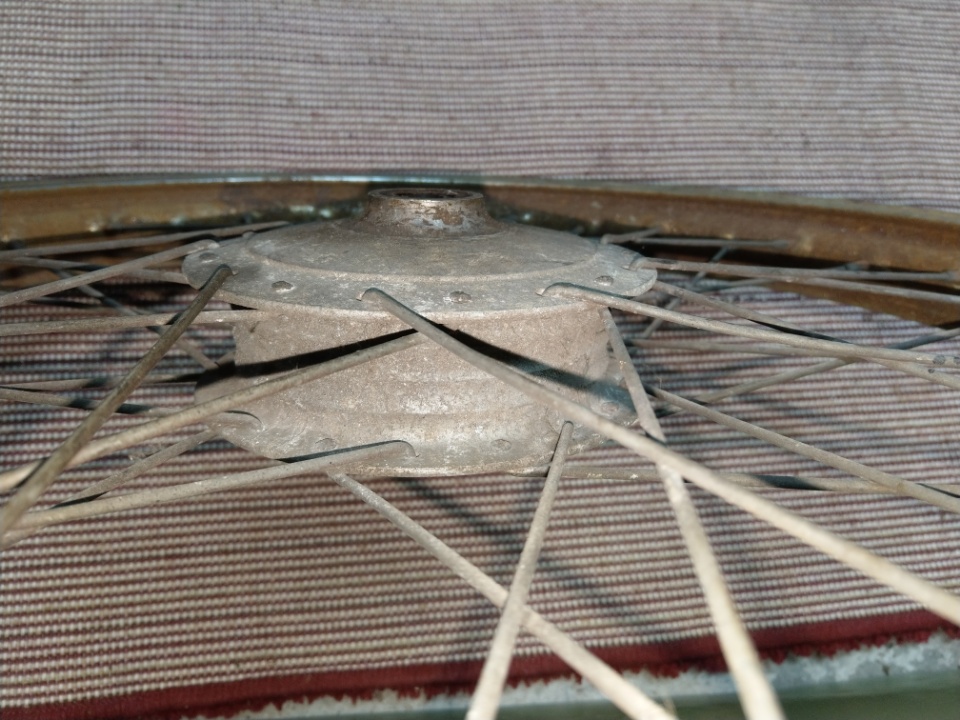 Für das Vorderrad hab ich Dir aus Novegro was mitgebracht, ohne Achse und im Bergungszustand. Das Bild zeigt die baugleiche Nabe im einbaufertigen Zustand. Für das Hinterrad benötigen wir die Nabenbreite.
