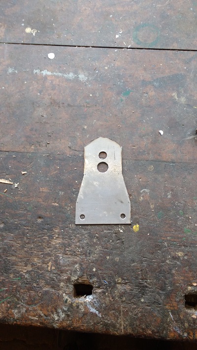 Dann auf 1,5mm Stahlblech übertragen, Bohrungen angebracht, mit dem Winkelschleifer ausgeschnitten und im Schraubstock gekantet. Ging so, 100 prozentig gerade wurde es nicht, geht aber.