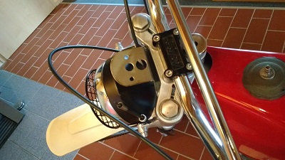 So weit ok. Der CEV Tacho ist neu und von 1990, mittlerweile würde ich einen mit schwarz weißem Zifferblatt suchen, aber ok. Die Tachowellenführung ist leider nicht gut. Ich bekomme den Tachoantrieb am Rad nur so montiert, daß die Welle genau senkrecht nach oben abgeht. Ich hätte sie lieber nach hinten gehen lassen, um sie in einem großen Bogen zu führen, ist besser wenn die Gabel einfedert. Aber gut, das bleibt erst mal so. Auch blöd ist die Tatsache, daß ich die Lampenhalter liebevoll rekonstruiert habe, die Welle jetzt aber am Lampengehäuse anliegt und dadurch einen blöden Bogen macht. Längere Lampenhalter wären jetzt klar besser, aber nuja. Vielleicht gibt´s ja eh nur ein Moped zum ankucken, da isses nicht so wichtig.