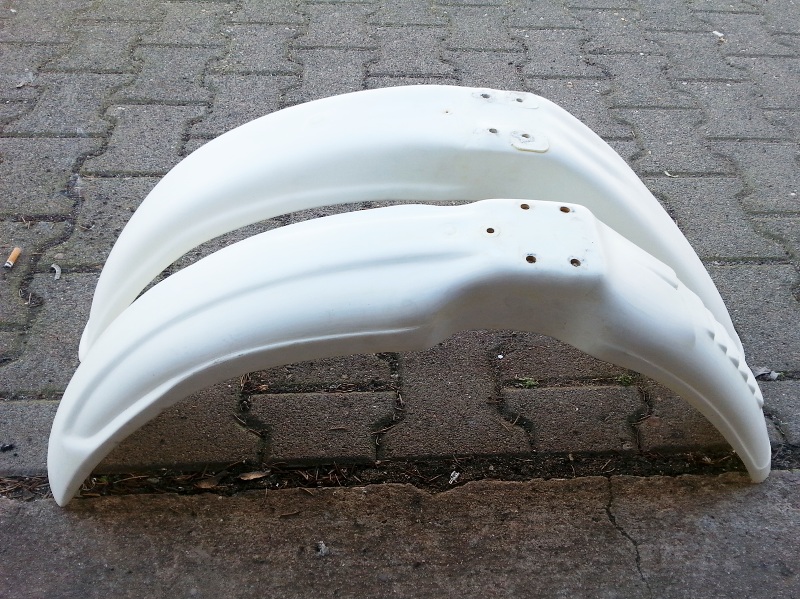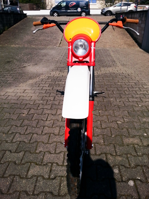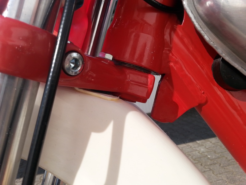 Der rote war ja dran (siehe Seite 1). Ist viel zu groß für die Gabel und hat mir von Anfang an nicht gefallen. Den zweiten von oben, hatte ich als Alternative für den obersten aus Novegro mitgebracht. Sieht aber ein bisschen wie Kindermoped aus. Im Februar habe ich zufällig den obersten zwischen weiterem Plastikschrott in Novegro entdeckt. Den hatte ich schon lange im www gesucht, weil der auch von Beta verbaut wurde (siehe Prospektbild Seite 1), konnte ihn aber nirgends finden.