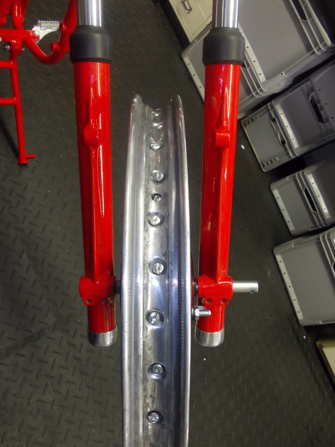 Dem aufmerksamen Betrachter entgeht natürlich nicht, das der Motor noch nicht richtig fest ist (passende Schraube hole ich morgen noch). Weiterhin kann man sehen, dass die Schwingenachse gut gefettet ist