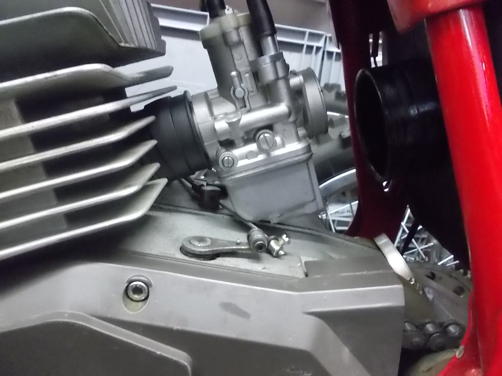 Hatte schon mal probiert einen 26er oder 28er Vergaser anzubauen, aber der Winkel von Vergaser-Ansaugstutzen war extrem steil. Jetzt hatte ich an Michel seiner RX einen gewinkelten Ansauggummi gesehen, den aber auch nicht in Novegro gefunden. Aber im Internet wurde ich fündig und zwar passt der von einem Aprilia Leonardo 125er Roller.