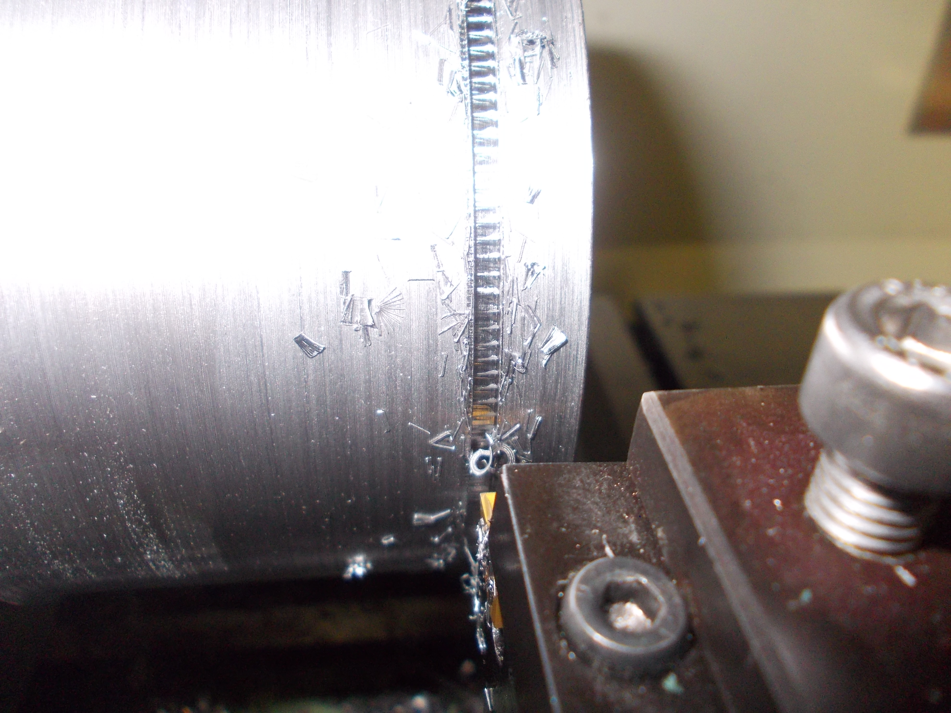 Kurz überdreht um den Ansatz mit zu entfernen und dann das Gewinde geschnitten.