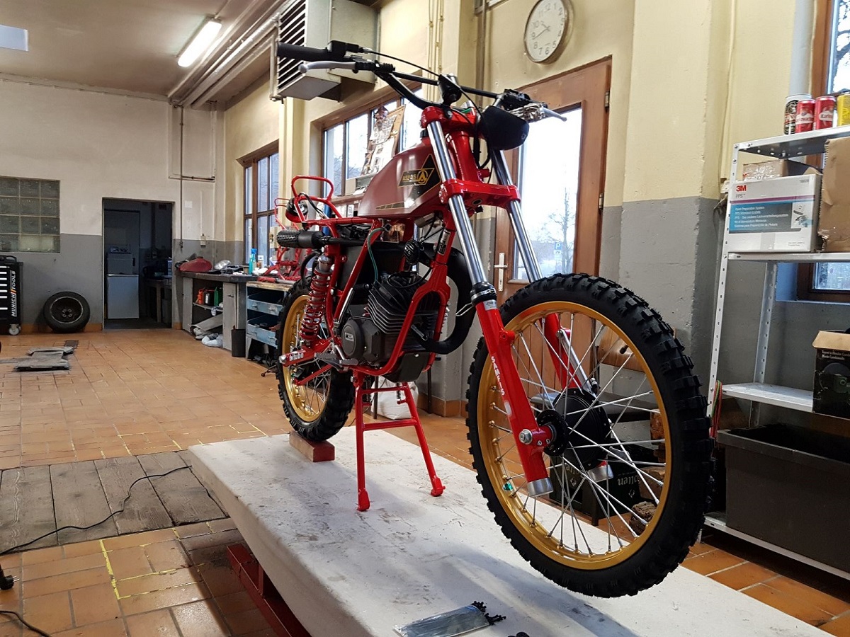 Das ganze Moped sieht übrigens so aus, hat über 30 Jahre in einem Wiener Schaufenster gestanden und Null Betriebsstunden drauf