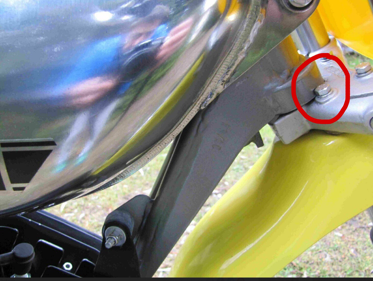 - Schrauben in unterer Gabelbrücke, da ist sicherlich normal nur ein Gewinde drin. Oder besser Inbusschraubenköpfe nehmen.