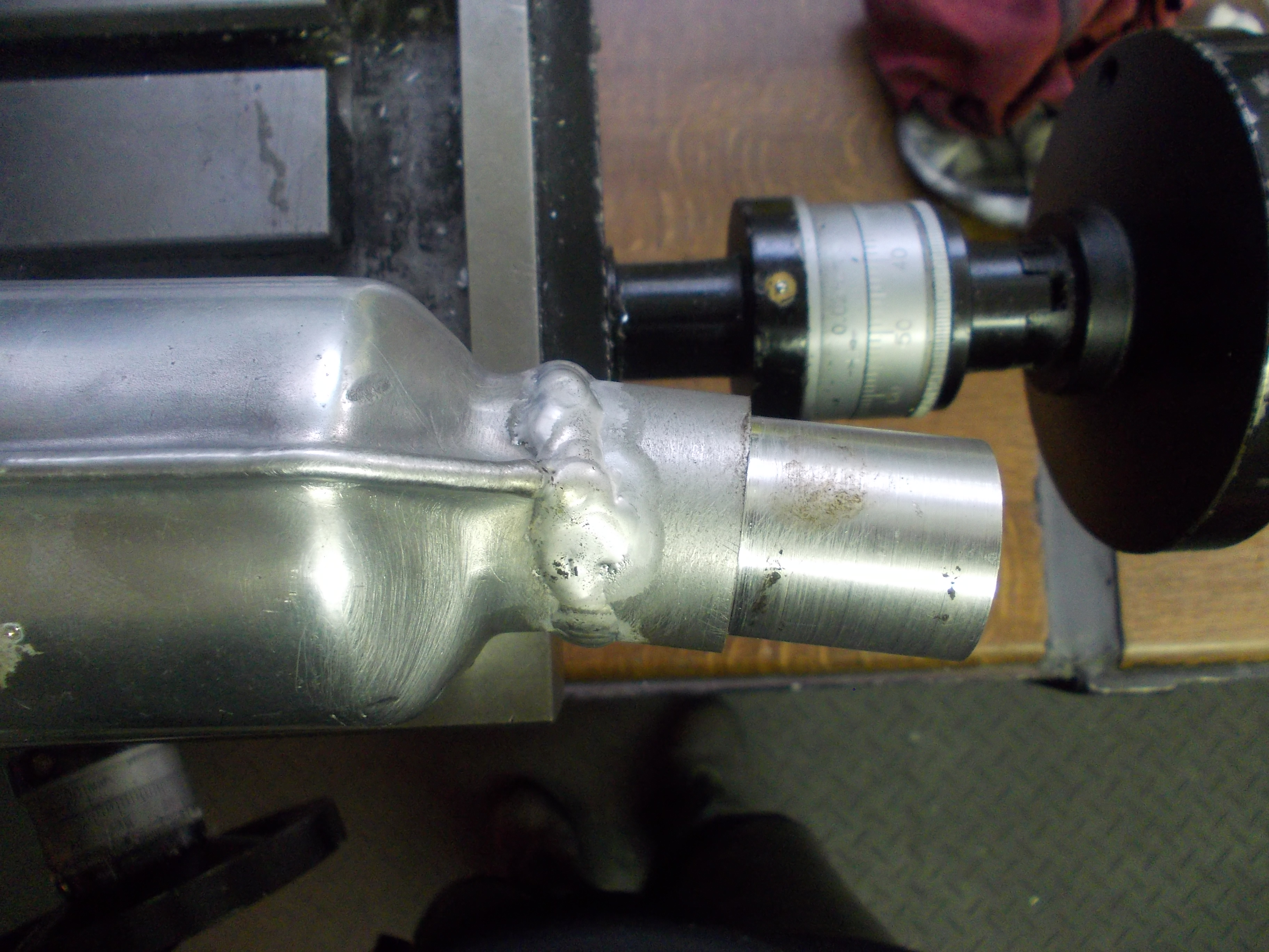 Dann einen Anschluss für das Verbindungsrohr mit 10 Grad Winkel erstellt und an den Endtopf geschweisst. (Klappt immer besser :P ). Dann das Verbindungsrohr angepasst und alles verschweisst.