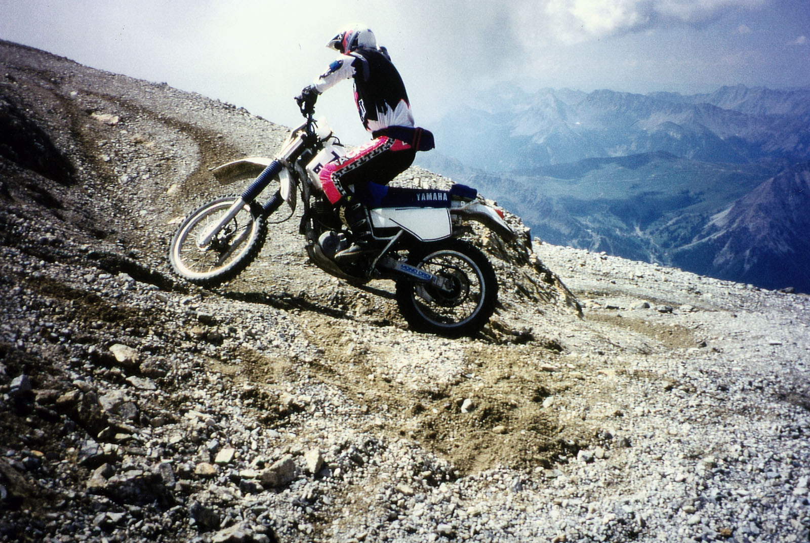 Die TT 600 hat ein richtiges Cross Fahrwerk und lässt sich mit dem 600er Motor bombig fahren. Vor allem in großen Höhen (Monte Chabarton = 3136 Meter) stottert oder spuckt der Motor im Vergleich zu XR 600 oder KLM LC4 nie und zog wie ein Traktor.
