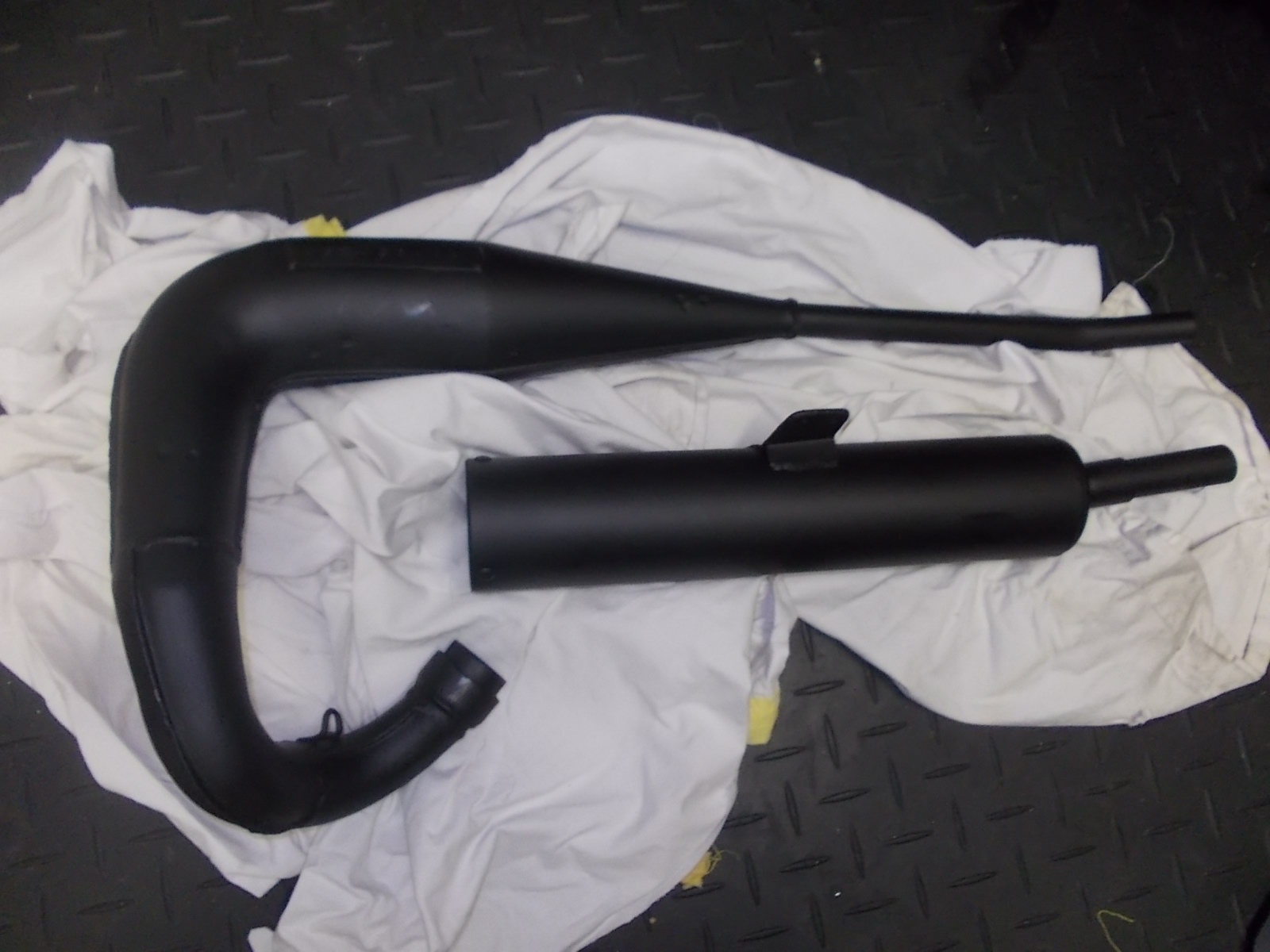 So jetzt sind „mein“ Krümmer und der Endschalldämpfer gestrahlt und mit Auspufflack versehen worden.