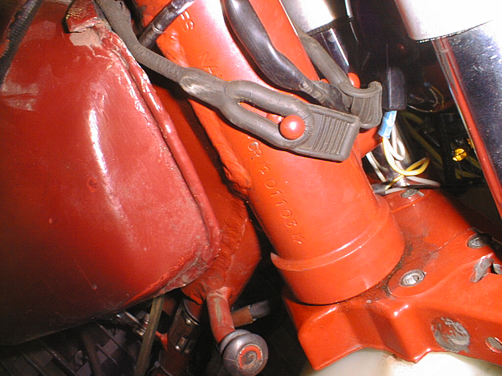 Vorne wird das Ganze über einen Gummi gemacht, diesen gibt es heute noch so an GASGAS EC 250 (Modell 2000 auf jeden Fall) als Tankbefestigung.