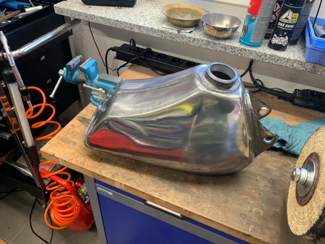 Die RX hat ja normalerweise einen Stahltank, die beiden kleineren Alu Tanks sind von der WMX, gleiche Größe wie der Stahltank, der größere Alu Tank stammt von einer WRX.