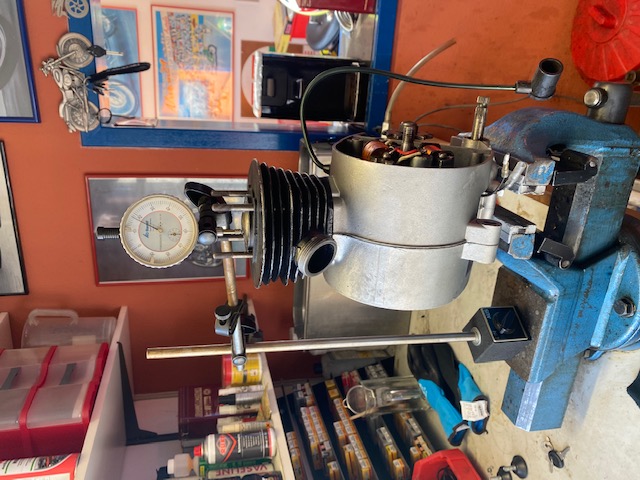 Bei abgenommenen Kopf eine Wasserwaage auf den Zylinder auflegen und die Position des Motors feinjustieren.