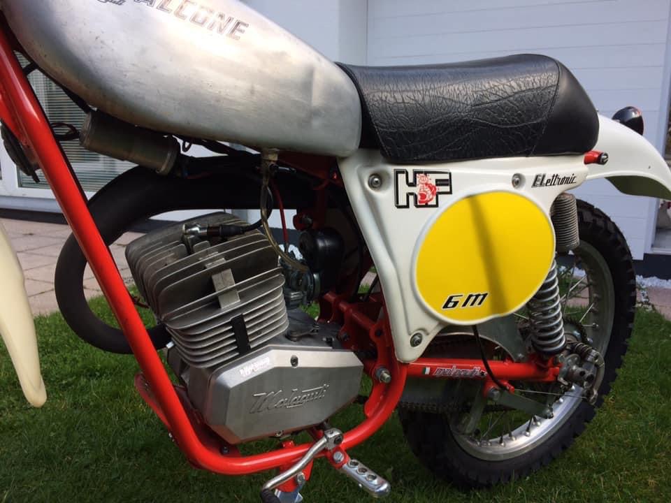 neue Reifen, neue Hebel und Gasgriff, neue Magura Griffgummis, den speziellen HF Lenker, neue Seitenteile, Heckkotflügel, Aprilia Rücklicht, Alu Kettenschutz und die Malaguti Werkzeugtasche und Hebelschützer. Also alle begehrten HF teile sind dran.