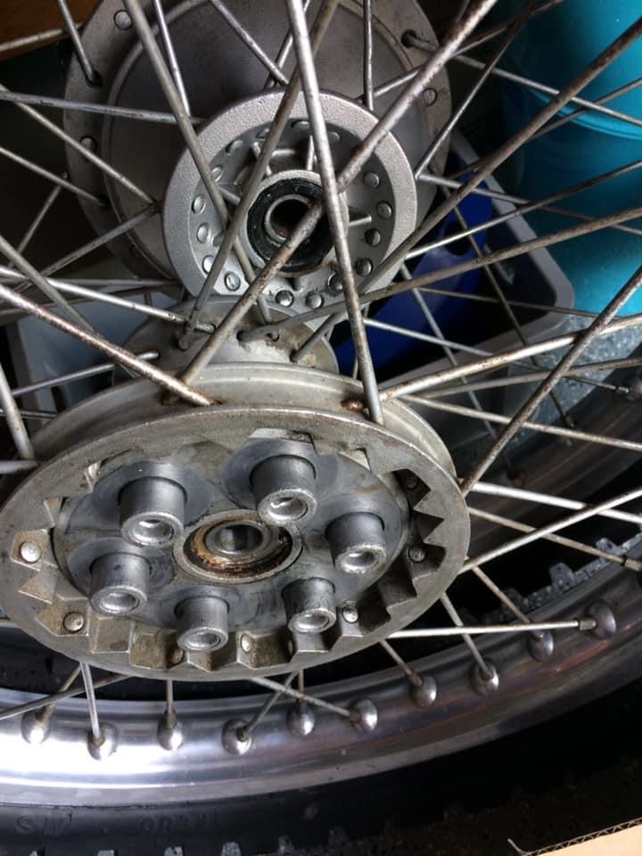 Da ich die Räder ohnehin draußen habe werde ich die Bremsankerplatten jetzt auch noch glasperlstrahlen und die Lager erneuern, das scheinen noch die ersten von 1979 zu sein. Beim Hinterrad sind 2 in der Platte und 2 im Rad wenn ich das richtig sehe. Eigentlich wollte ich nichts weiter machen an den Rädern aber der Lockdown geht ja wohl noch ein Weilchen ;)