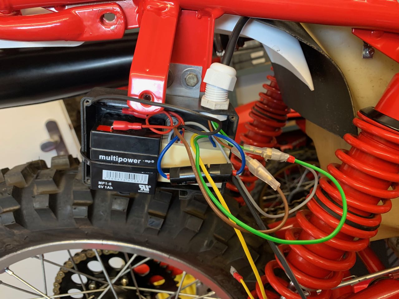 Habe in meinen immer noch die alten Akkus drin, scheinen auch noch zumindest etwas Strom zu speichern, da nach abgestelltem Motor das Bremslicht noch kurze Zeit glimmt und die Hupe ächzt.