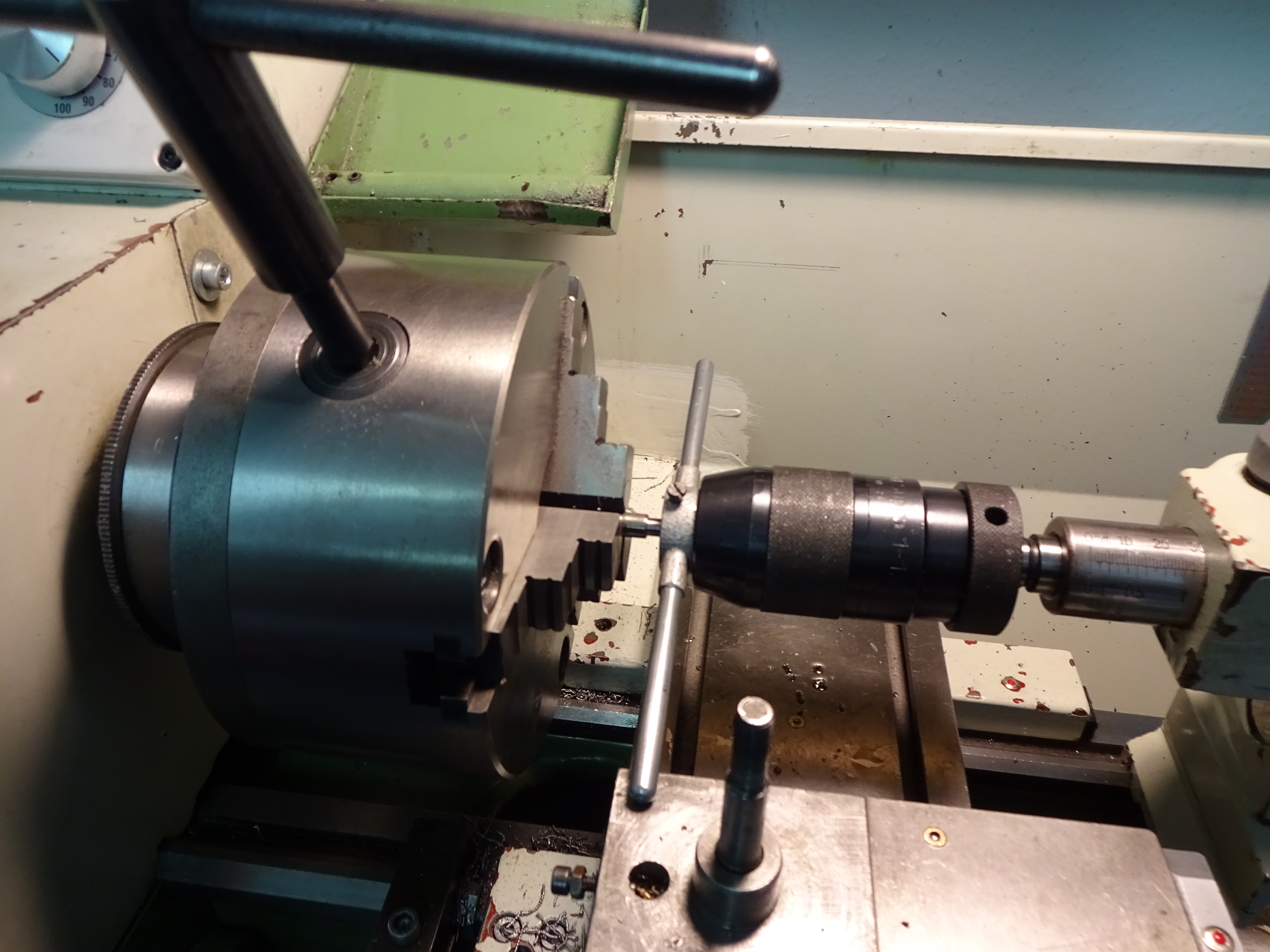 Mit dem Zentrikator schnell mittig gestellt. Innerhalb von 1min auf unter 1/100stel gestellt