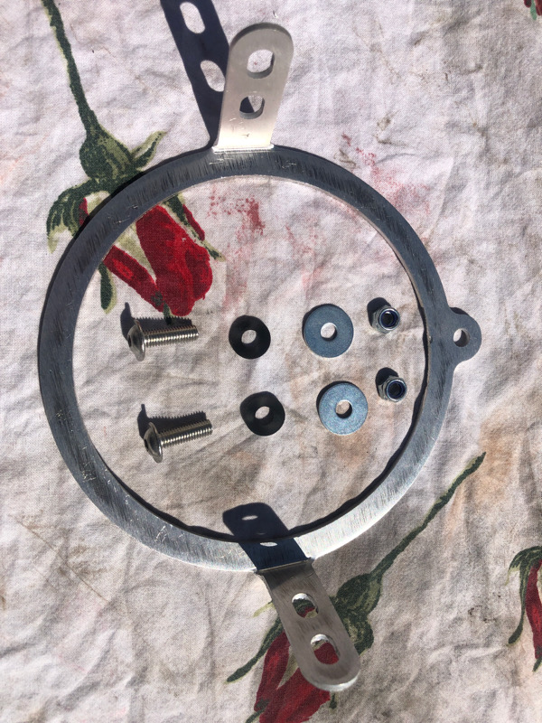 Gestern war ich im Baumarkt, um möglicherweise die Lösung für das Problem zu finden, den Reflektor in der Lichtmaske zu befestigen. Auf Verdacht hatte ich mir eine Rohrdichtung gekauft, die dann auch tatsächlich passte. Auf den Fotos ist zu sehen, welche Teile ich verwendet habe.