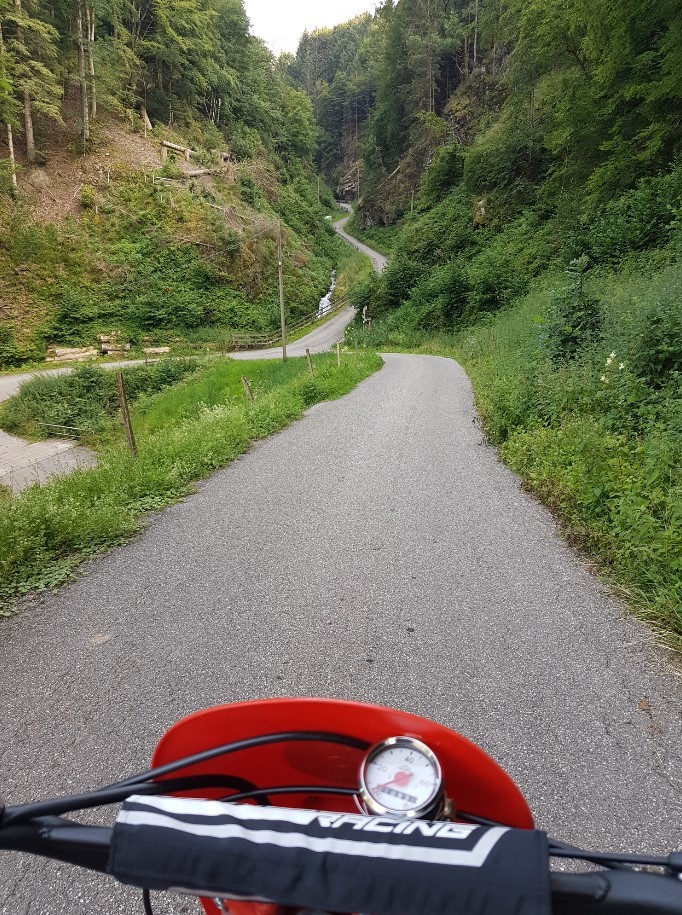 Zurück gings dann aber natürlich nicht direkt. Das wäre viel zu kurz und Kurzstrecken sind extrem ungesund für ältere italienische Mopeds. So zumindest meine Begründung für einen Abstecher zu einer bewirtschafteten Berghütte.