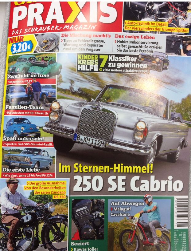 das ist jetzt der zweite Artikel in der Oldtimer Praxis, vor 2 Jahren war ich mit dem Fantic Chopper und der Trial drin und nun mit meinen restlichen 3 Mopeds Malaguti Cavalcone, Fantic Replica und Aspes Navaho. Ich habe es also tatsächlich mit allen meinen 5 kleinen Mopeds in die Oldtimer Praxis geschafft, mit ein Grund warum ich mir eigentlich keine weitere kaufen darf ;)