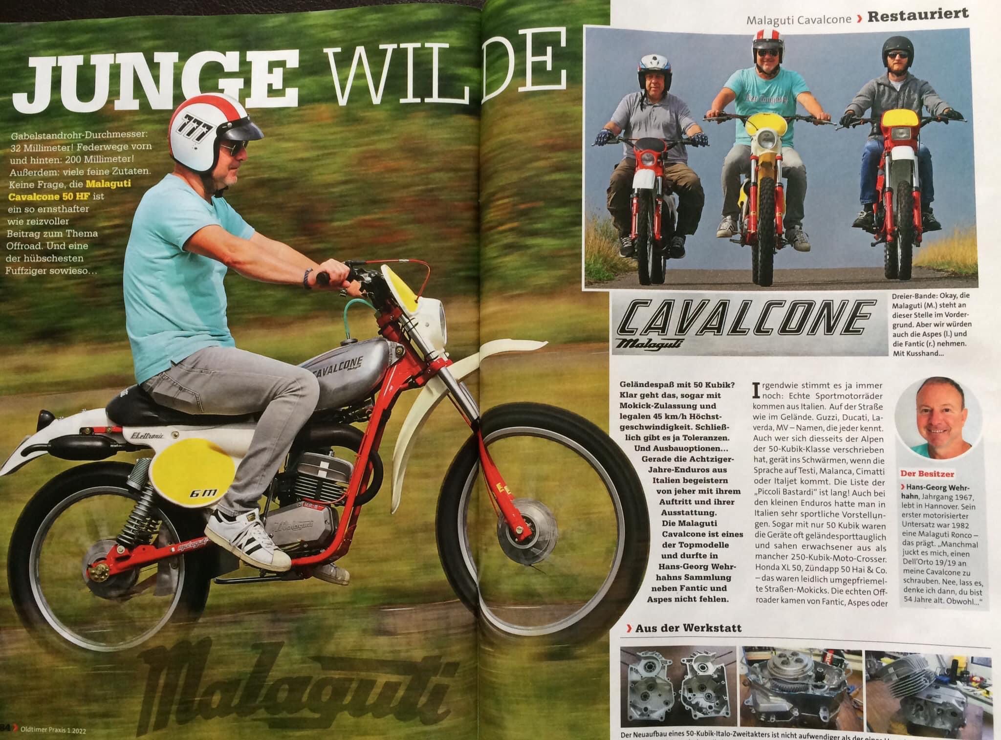 das ist jetzt der zweite Artikel in der Oldtimer Praxis, vor 2 Jahren war ich mit dem Fantic Chopper und der Trial drin und nun mit meinen restlichen 3 Mopeds Malaguti Cavalcone, Fantic Replica und Aspes Navaho. Ich habe es also tatsächlich mit allen meinen 5 kleinen Mopeds in die Oldtimer Praxis geschafft, mit ein Grund warum ich mir eigentlich keine weitere kaufen darf