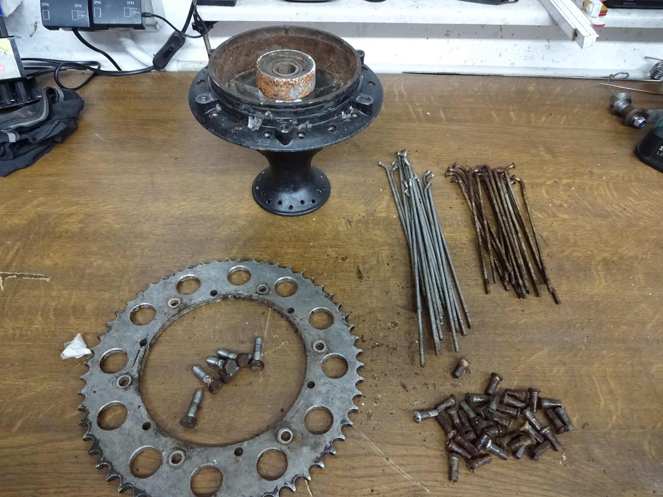 Dann heute Abend noch die in WD40 marinierten Felgen zerlegt, ging prima alles geschmeidig locker. Maße waren übrigens identisch zu Aprilia RC 80