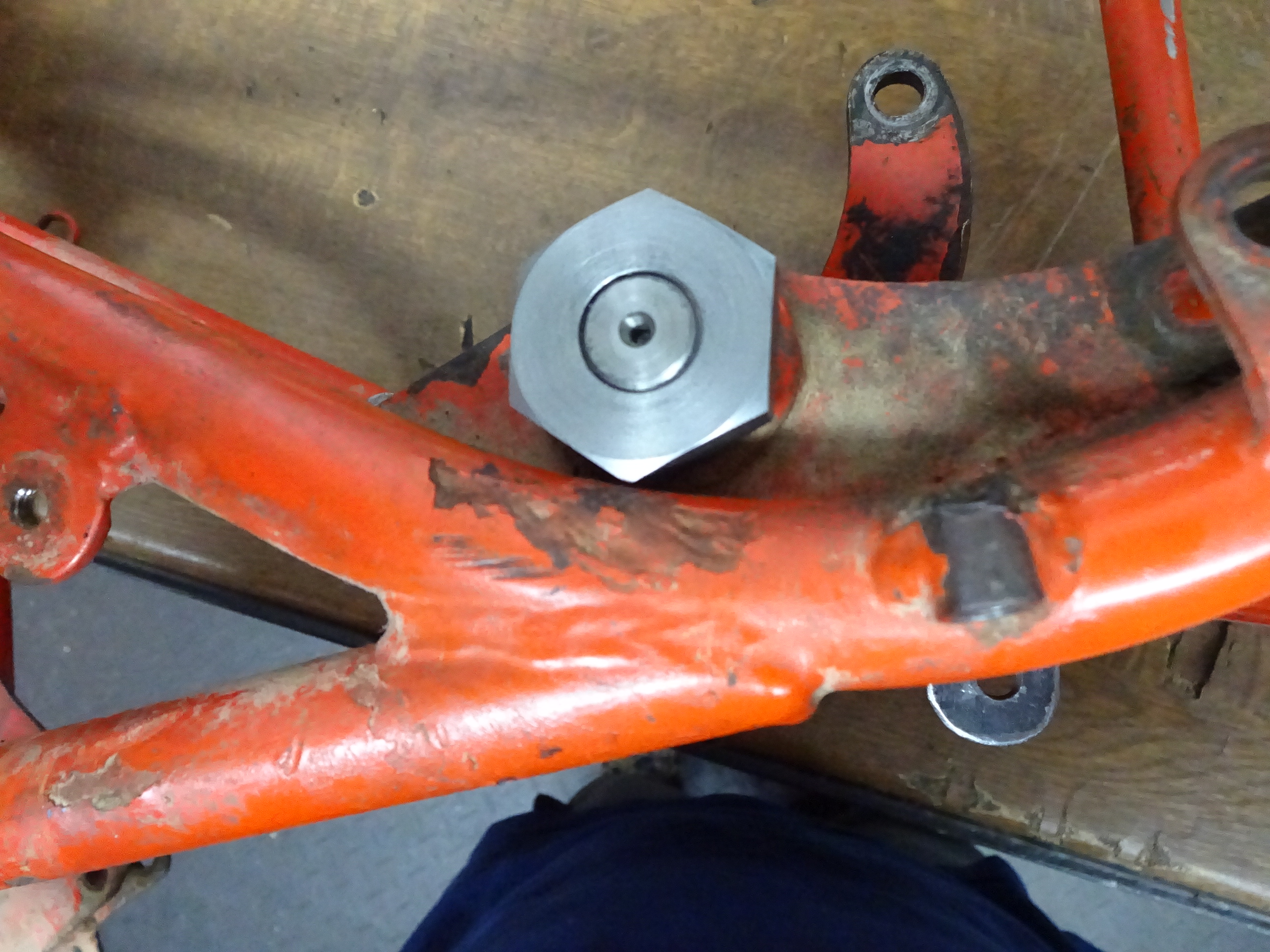 Trotzdem noch ein wenig an der Gori gemacht. Zuerst musste ich noch passende Distanzstücke für die Schwinge zum Rahmen herstellen.