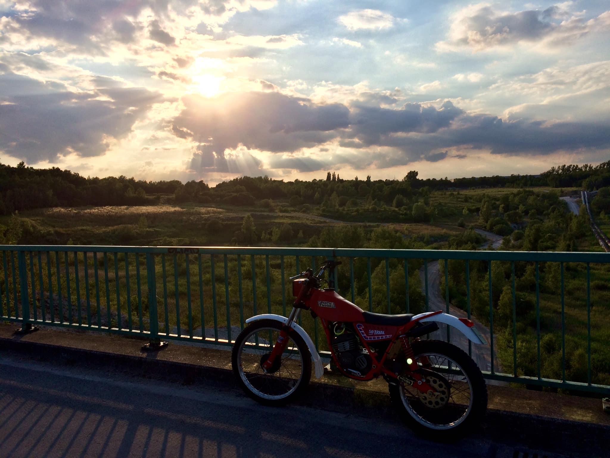 die "Prärie" beginnt gleich 500m hinter meinem Haus, da kann ich offroad bis zum Mittellandkanal fahren, übern Kronsberg, ein Hügel mit 118m Höhe ;) Wald dazwischen mit schönen Passagen und dann eben eine große Mergelgrube. Offiziell darf man da natürlich nirgens fahren, aber in der Woche abends ist nix los und mit der kleinen 50er fährt man unter dem Radar, schön unauffällig, die meisten schauen nur irritiert wenn sie mich sehen :mrgreen: da bin ich schon mit 15 mit der Malaguti gewesen, aber nur mit Anlauf und runterschalten die Steigungen hochgekommen, mit der Trial zieh ich jetzt ganz locker hoch sogar im 2. Gang 8-)
