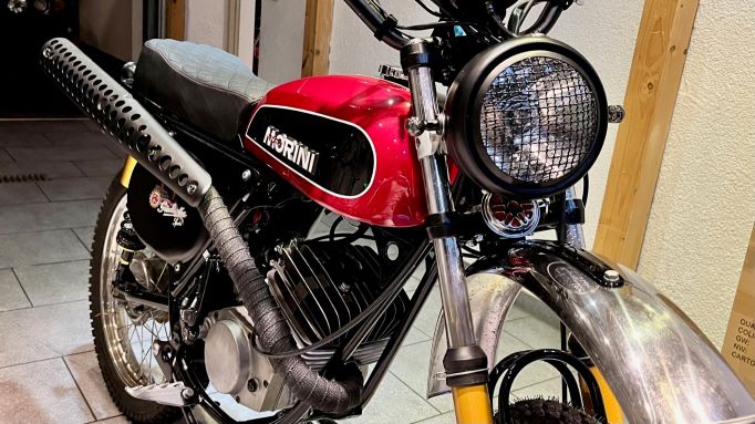 Die "möchtegern" Morini liebt mein Sohn mehr als alles andere. Sie hat den "einfachen" UC4 Motor mit dem 65ccm Kolben, 12 Vape Zündung, ist komplett auf vernünftige Elektrik/vernünftigen Kabelbaum umgerüstet, 19'er Vergaser und bringt knapp 80 km/h aufs GPS.
