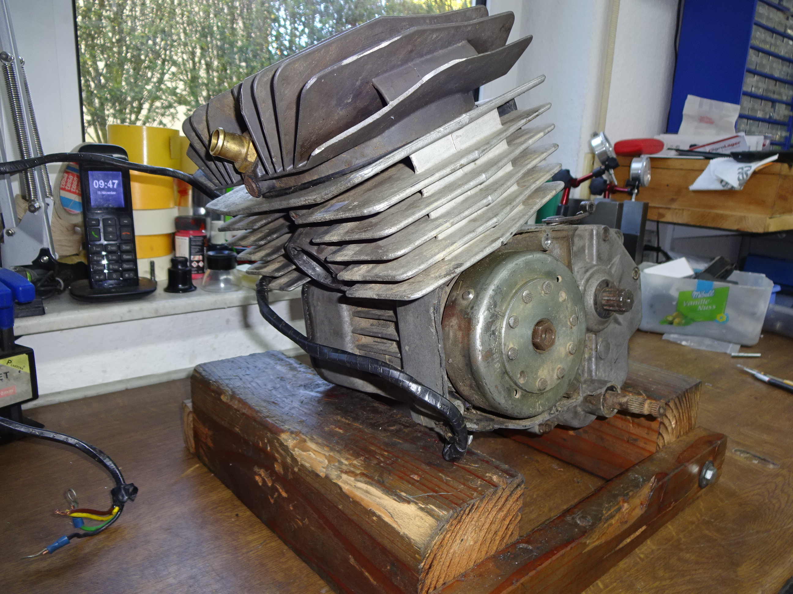 Ah ein Minarelli K6 kam zum Vorschein, mit den ersten ersichtlichen Beschädigungen