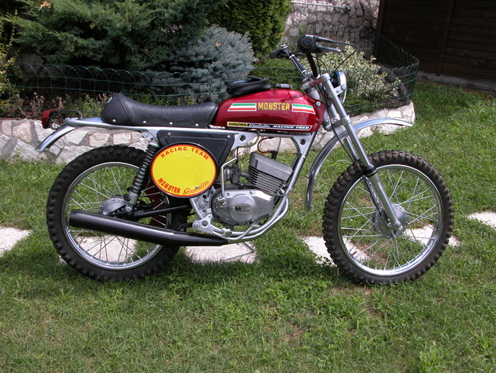 Hatten uns anfangs (teils) orig. Prospekte der Monster im Netz zusammengekauft um die Technik annähernd wieder original herzustellen, aber: Die orig. Krümmer- und Auspuffführung hat uns überhaupt nicht gefallen; der orig. Scheinwerfer (mit Kunststoffverstrebungen) ist billigste Plaste gewesen und teilweise durch zugucken zerbröselt; das in einer Gummischlaufe aufgehängte Rücklicht ebenfalls billigstes Plastik, die orig. Twinshocks sind den Namen nicht wert (qualitativ sowie funktional); die quasi nicht vorhandene Elektrik (besserer Klingeldraht!) haben wir komplett rausgeschmissen und mit einem modernen Kabelbaum versehen und uns dann weiter entschieden einigermaßen vernünftige/neuere/moderne Teile zu verbauen (die orig. Teile sind natürlich noch vorhanden und eingelagert). In mehreren Berichten über die Monster Baureihe haben wir gelesen, das diese eine "günstige Alternative zu den damals üblichen Mopeds" sein sollte...qualitativ stimmt/e das leider ebenfalls ;-) ) .