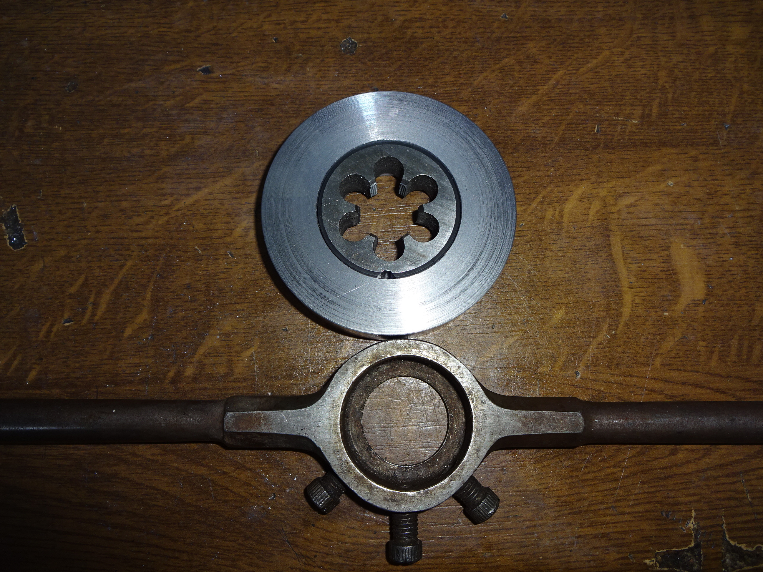 Dann brauchte ich einen Halter für mein Schneideisen M20x1.0 (Achse der Bremstrommel/Ritzelkombi bei Ruckdämpfer)