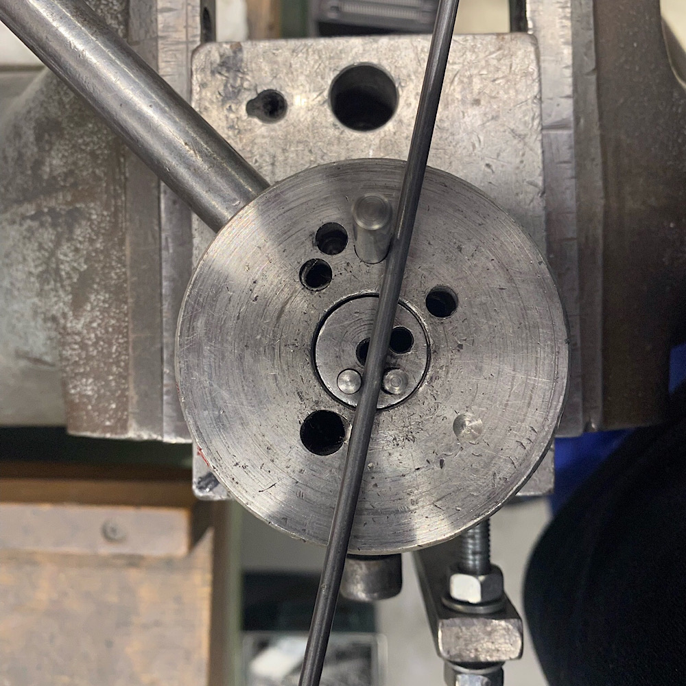 Also soll das Gestänge passend zweimal links/rechts gebogen werden. Nur wird das so einfach ohne Biegehilfe nichts. Dazu aus der Restekiste was geholt und gebohrt, gesägt und Gewinde geschnitten.