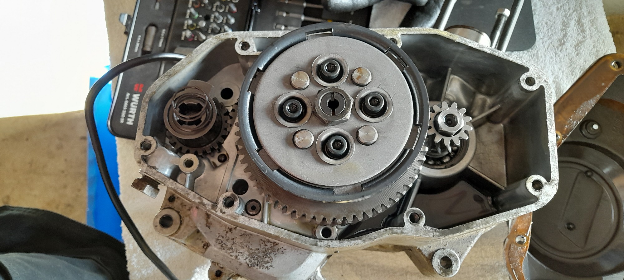 Ein Motor ist in 45min zerlegt und beim Zusammenbau braucht man ausser nem Meßschieber kein Spezialwerkzeug. Denn den Halter für den Kupplungskorb, baust du dir aus den alten Kupplungsscheiben.