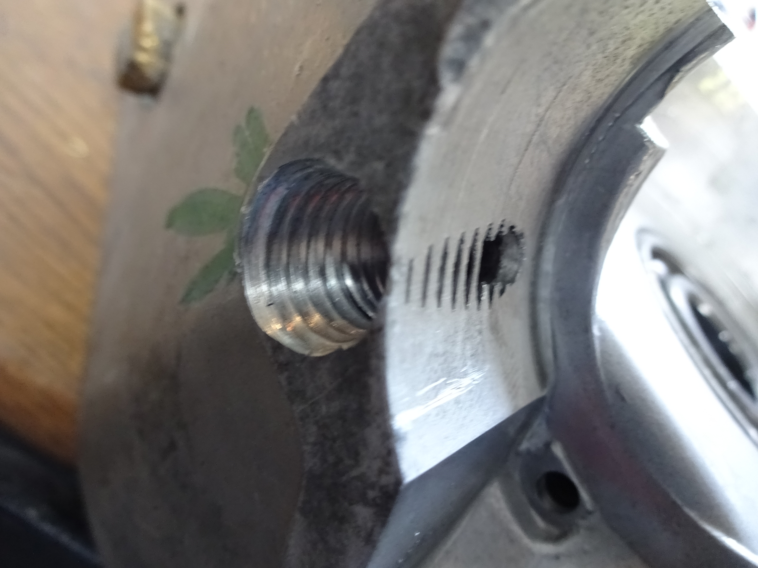 Da war aber wohl mal ein M7 Stehbolzen Gewinde defekt, also hat man da einen Einsatz reingebracht. Wäre ja alles OK, aber leider nur M6 und das noch aus Hartmetal. Keine Chance mit HSS Bohrer da auch nur anzukratzen. OK hab ja Hartmetalbohrer, leider nicht in allen Größen (dazu fehlt der Lottogewinn