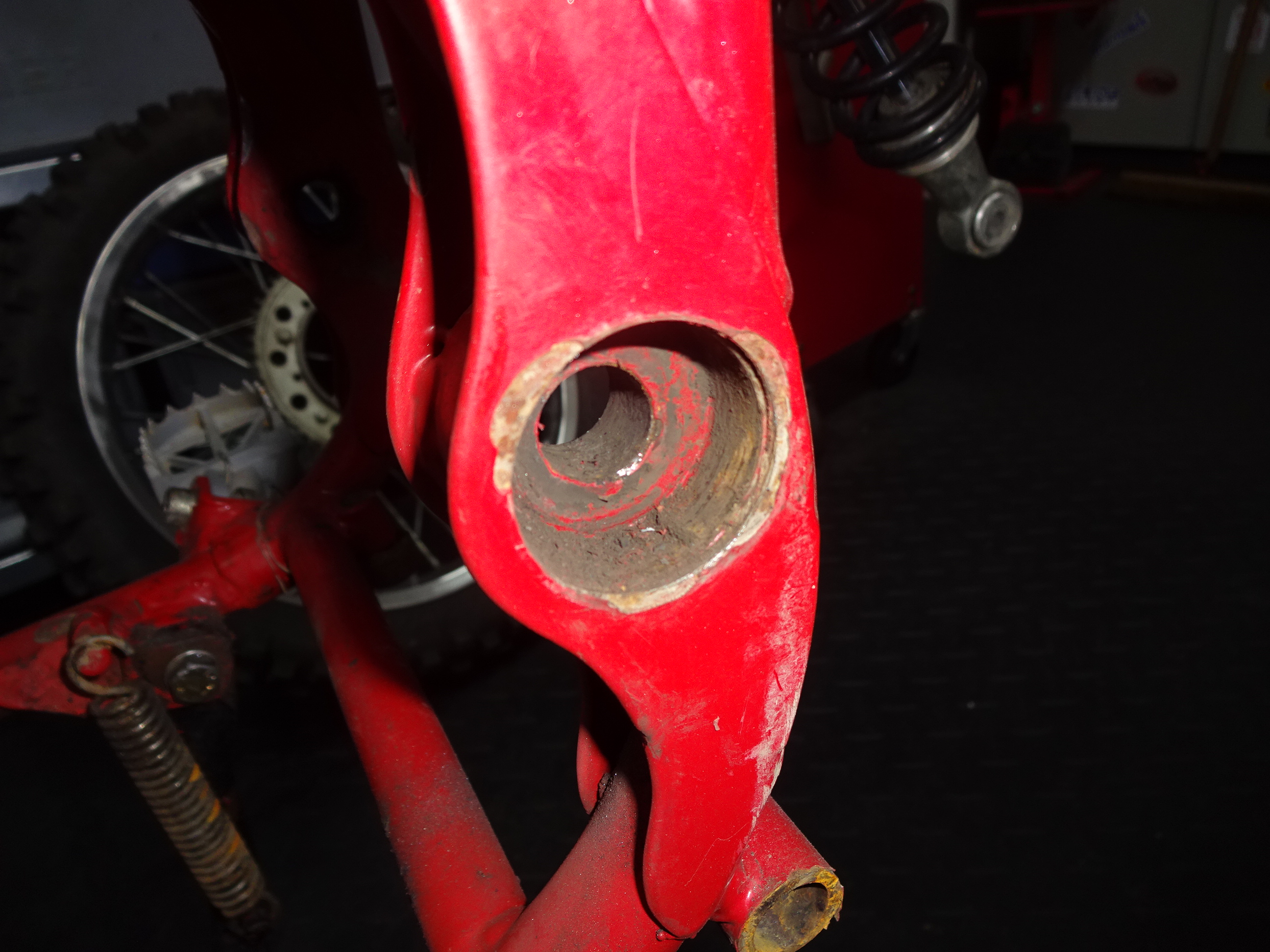 Bei näherer Betrachtung der Bohrungen im Rahmen, musste ich feststellen: Bohrung oval zu groß :o